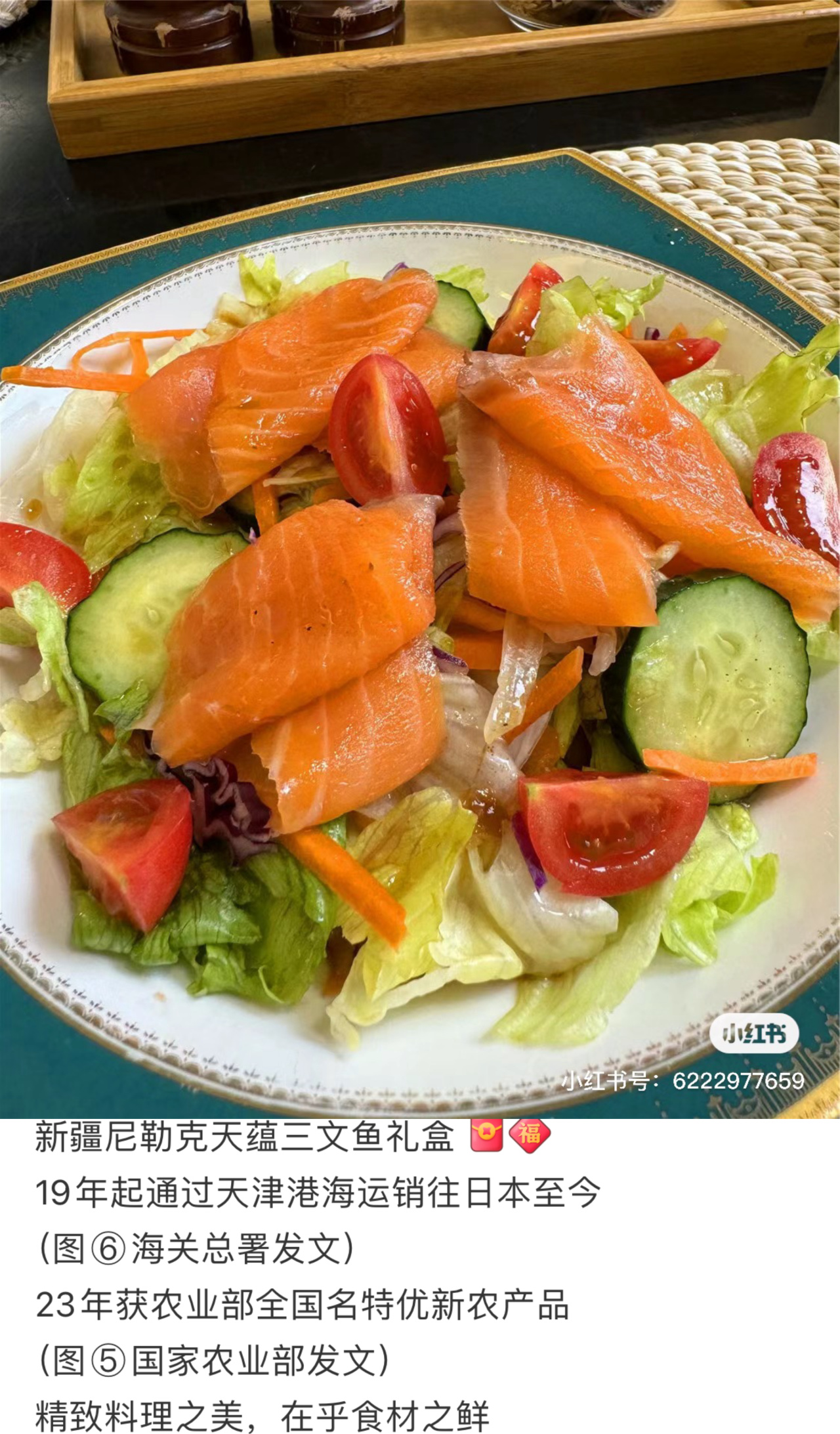 先说明下,这是来自新疆的淡水虹鳟,不是进口的海水大西洋鲑,这事在网上争论很多,但选什么完全看个人。因为众所周知的原因,很多人对海鲜比较谨慎,新疆依靠自己的地理优势,用丹麦的北美虹鳟鱼卵,在冰川活水中精心慢养3年,干干净净,没什么不能吃的,从捕捞到送市场在24小时内,远销海外,包括日本。而且还通过BAP、GAP、HACCP等国际权威认证,无抗生素残留,0寄生虫,细菌含量极低,其实是完全可以生食的,但如果介意的话,就煮熟了吃吧,更安心些!
