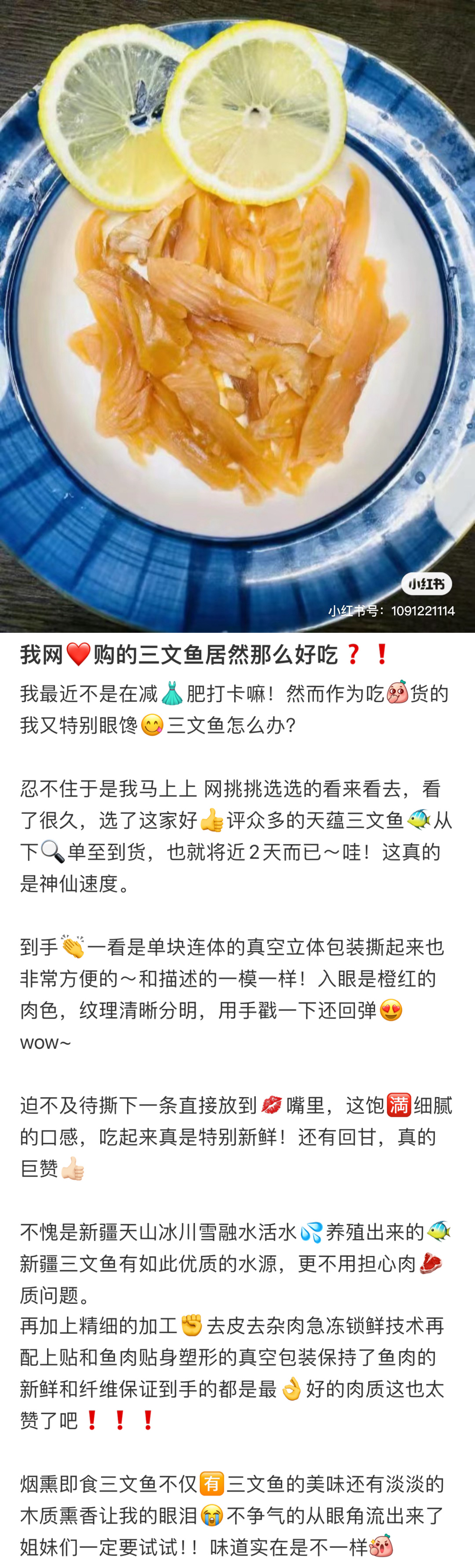 我其实主要是自己想吃,烟熏三文鱼片和带皮三文鱼段,都是可以加入减脂餐的小食材。烟熏三文鱼片可以直接吃,是精选的中段部位,采用食品级苹果原木料辅以红酒,低温12小时熏烤,烟香入肉,醇香浓郁,搭配上小酒超美味,也可以加入各种蔬果制成沙拉,或是夹面包当快手早餐,都很方便!带皮的三文鱼段,可以根据自己的喜好薄切厚切,挤上柠檬汁、点一点芥末酱油,或者用凉拌酱汁拌拌!不能接受生吃可以直接下锅煎,撒上蒜盐,也是鲜美!我是有做比较特别的,两个蛋加水打散,和鱼一起蒸,出锅后加上调料,非常非常好吃,鱼肉鲜嫩,蛋液润滑,口感又不会油腻,而且营养很好,减脂人学起来,牙不好老人小孩也很适合!