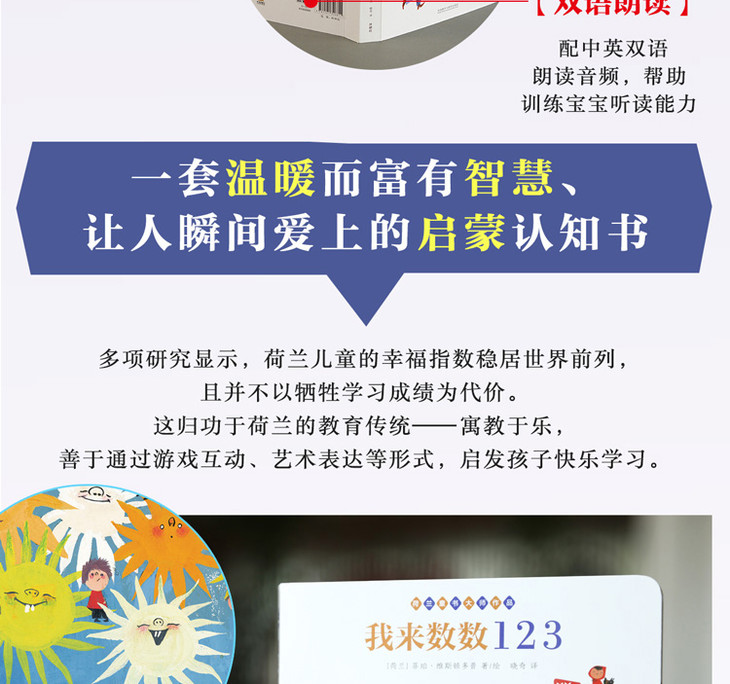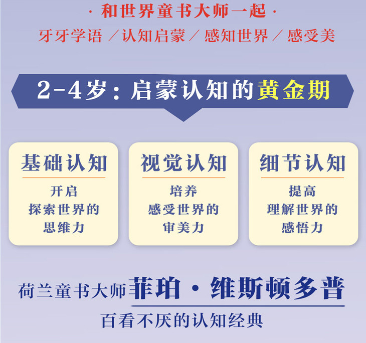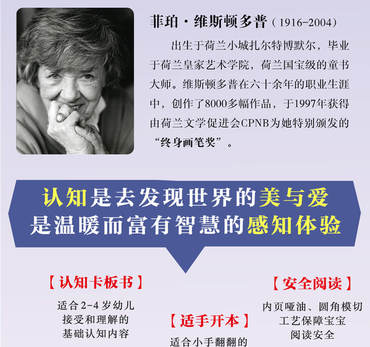 据联合国儿童基金会发布的一份调查报告显示,荷兰儿童幸福指数*,且并不以牺牲学习成绩为代价。这与荷兰的教育传统有密切联系,荷兰人更重视寓教于乐,善于通过游戏互动、艺术表达等形式,启发孩子快乐学习。菲珀·维斯顿多普是荷兰知名度极高的童书大师、“终身画笔奖”得主,她通过极致唯美、生动传神的画面,将关于世界简而美的智慧传递给小读者,借由独一无二的色彩表现力将孩子对世界*初的印象,定格在美好的童年记忆中,成为他们一生取之不尽的宝贵精神财富。
