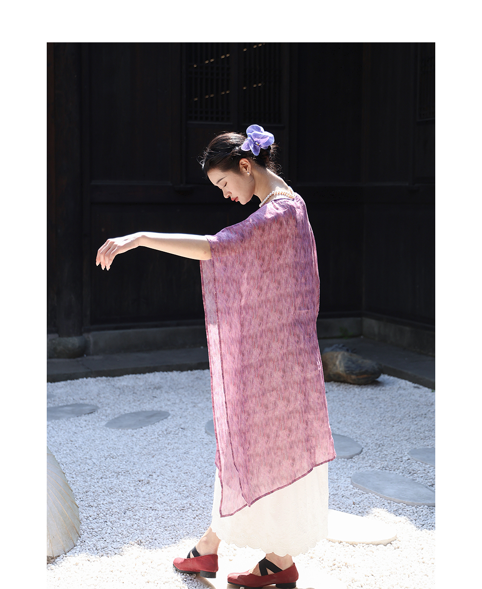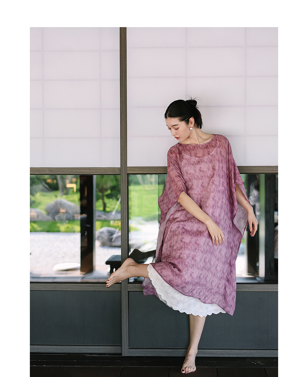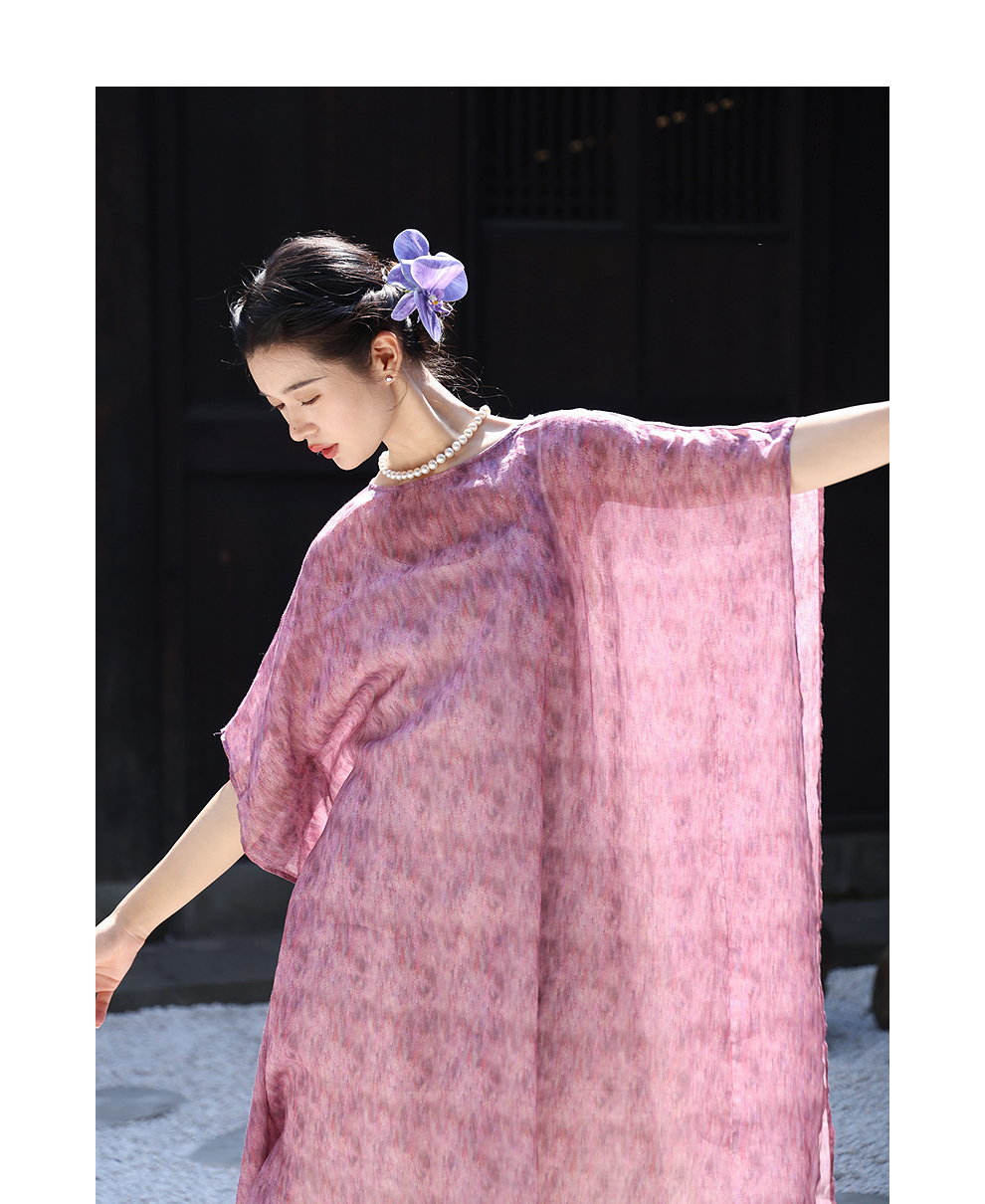绽放213朵/【宋瓷系列】高密苎麻窑变渐变肌理感宽松中袖连衣裙