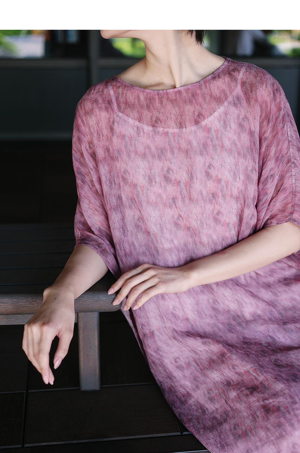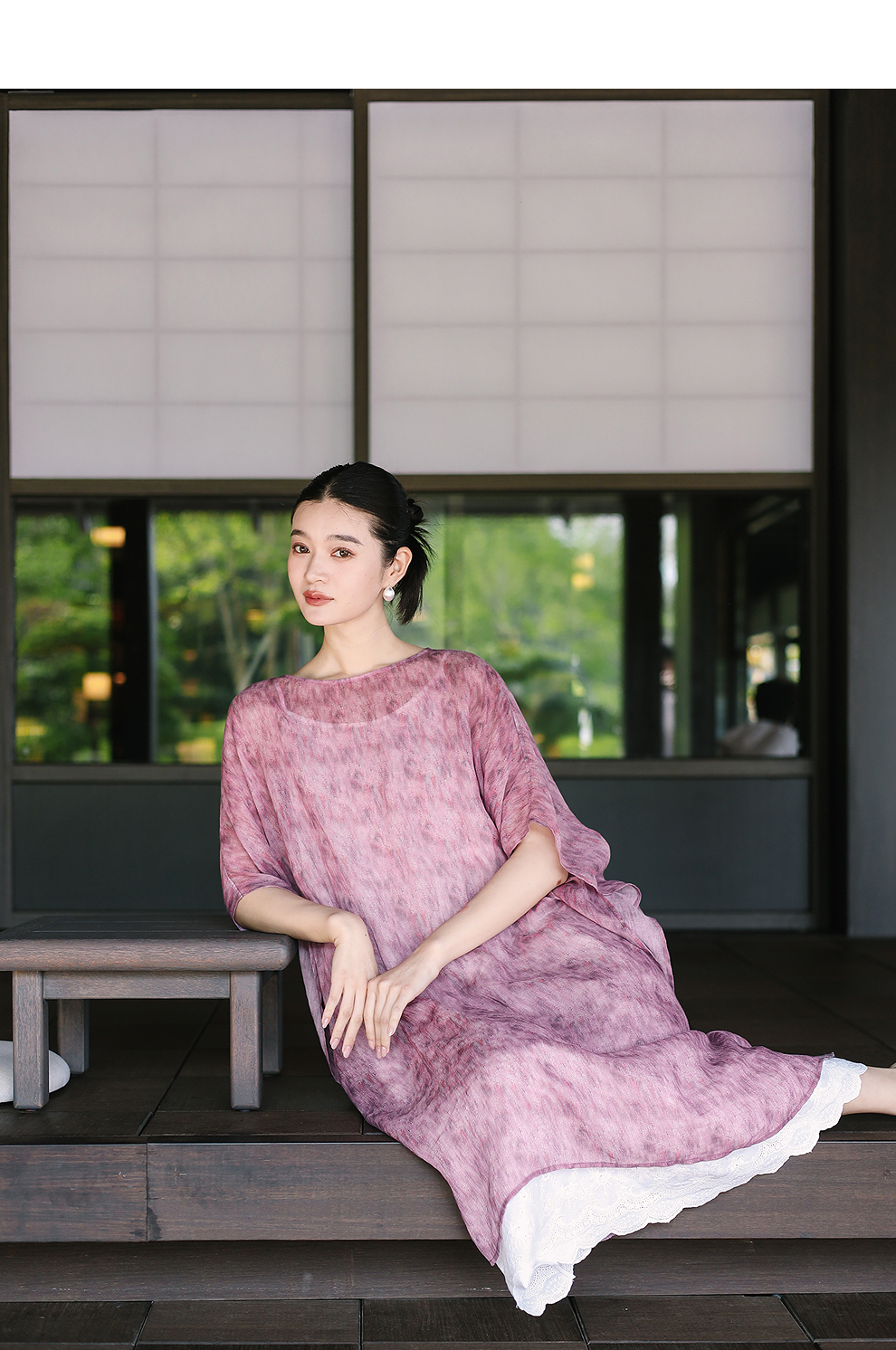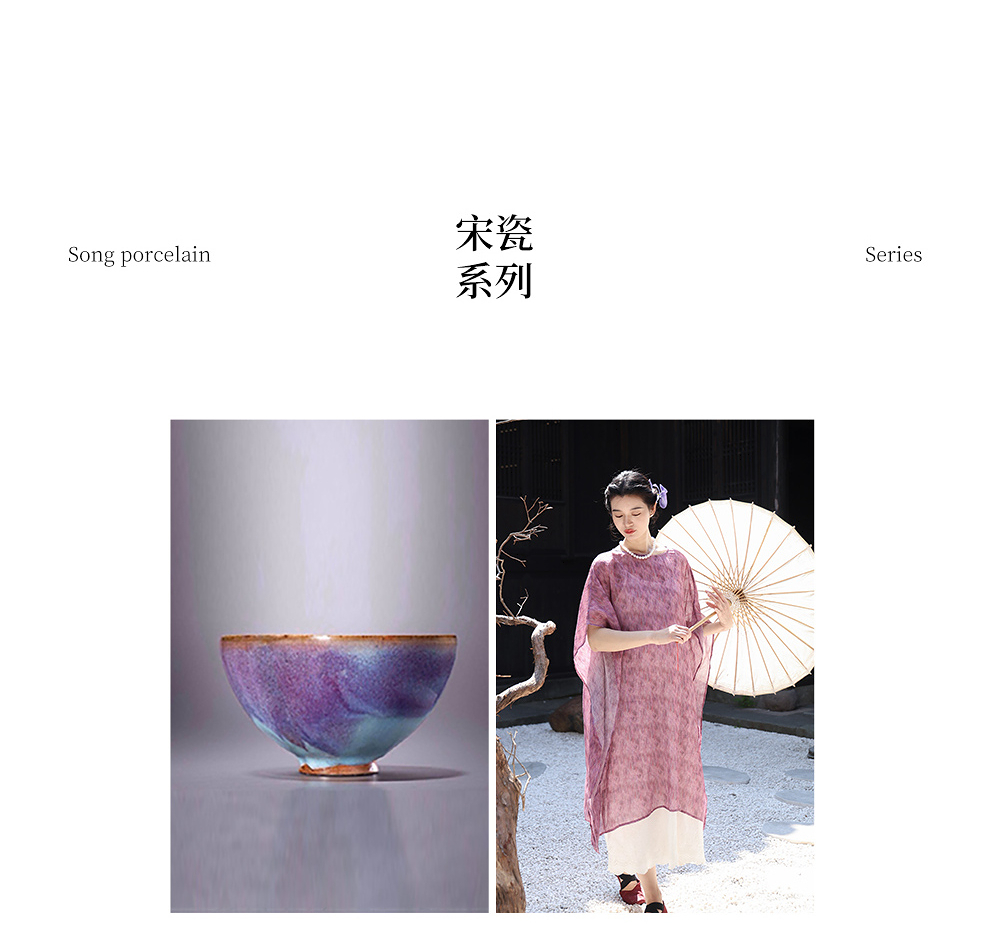 绽放213朵/【宋瓷系列】高密苎麻窑变渐变肌理感宽松中袖连衣裙