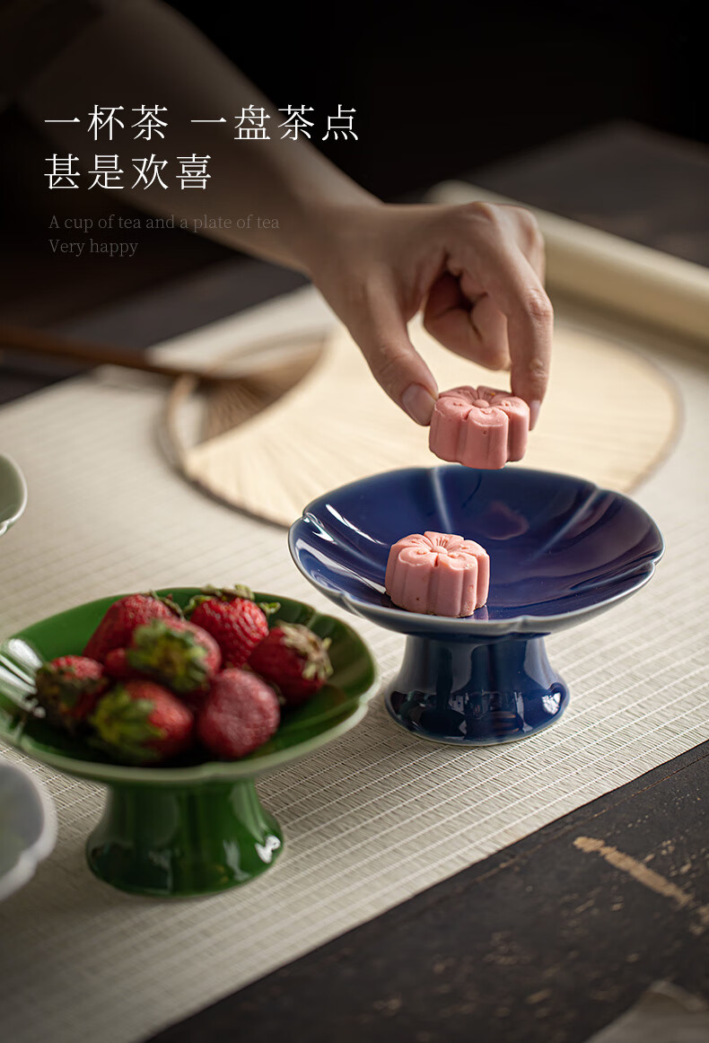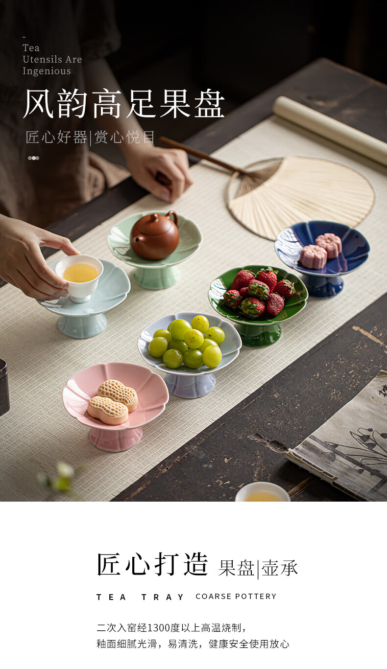 【风韵高脚盘】陶瓷高脚盘茶点盘供盘点心盘复古禅意零食小吃碟中式糖果盘水果盘