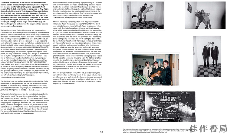 从早期罕见的受地下女权朋克运动暴女(Riot Grrrl)影响的杂志与表演,到创作具有影响力的电影、小说、雕塑、公共艺术甚至手机应用程序,米兰达·裘丽的职业生涯证明了她对于表达人类困境中的辛酸和幽默的擅长,也因此获得巨大赞誉。本书按时间顺序回顾了她的表演和影像项目、获奖影片、数字多媒体和文字作品,表现了其创作的多维性。裘丽的身份可能无法被归类,但其作品的重要性及其作为具有文化偶像的地位是无可辩驳的。