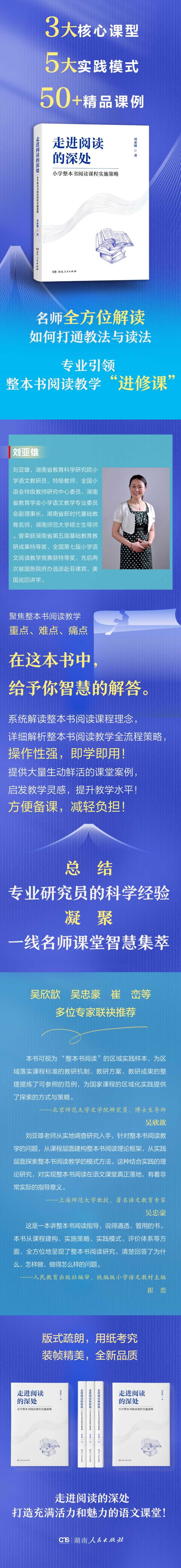 1、本书代表着湖南省教育科学研究院的前沿教育研究成果,对于广大一线教师开展整本书阅读教学有着科学的指导。