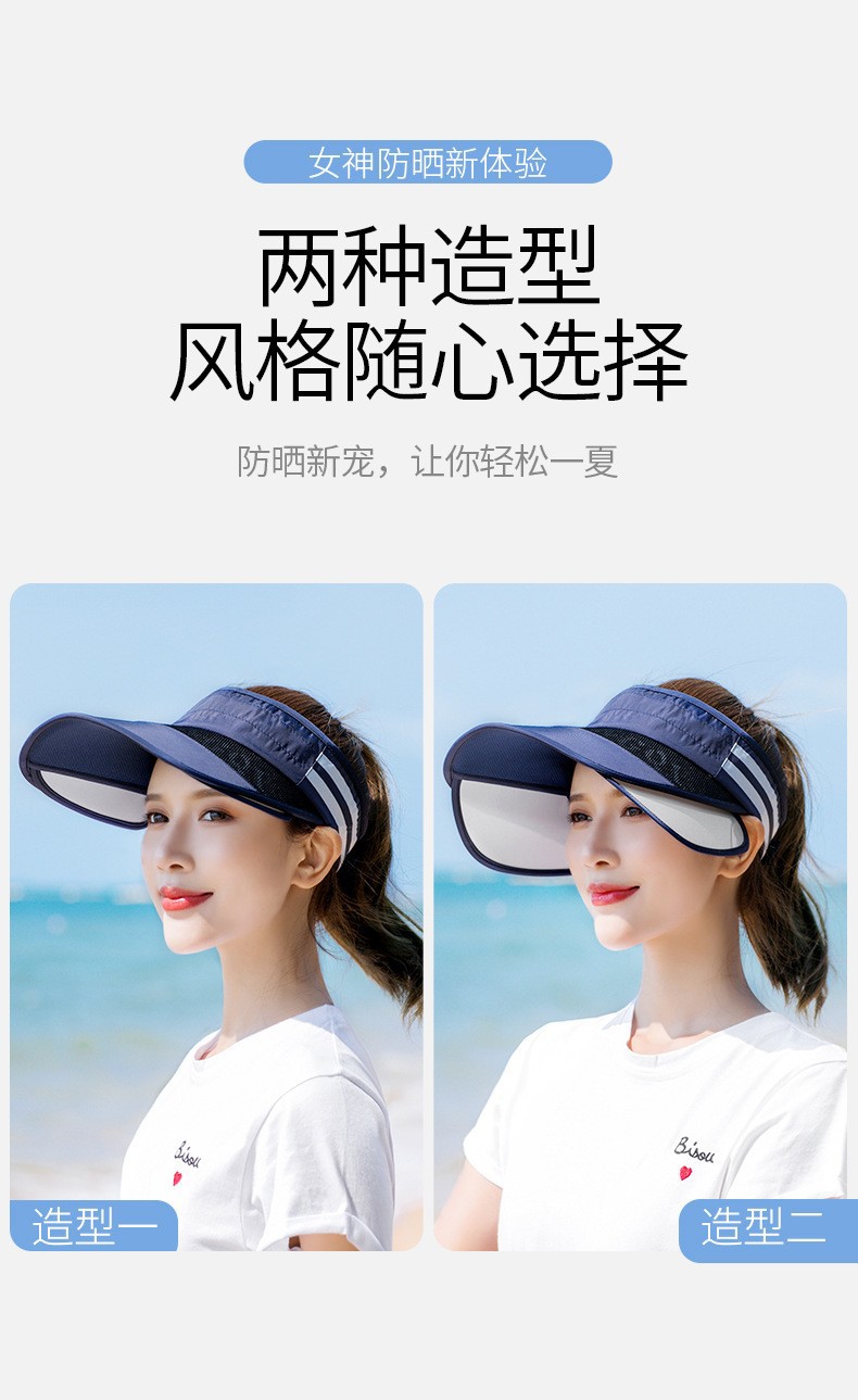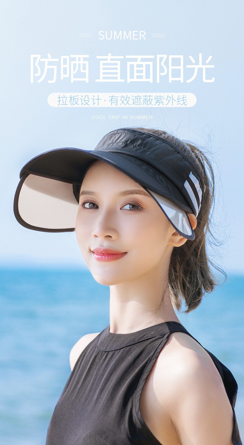 【可伸缩 时尚个性 全方位防晒新体验】防晒空顶帽子女夏天海边出游可伸缩拉板户外帽时尚百搭遮阳大 沿帽