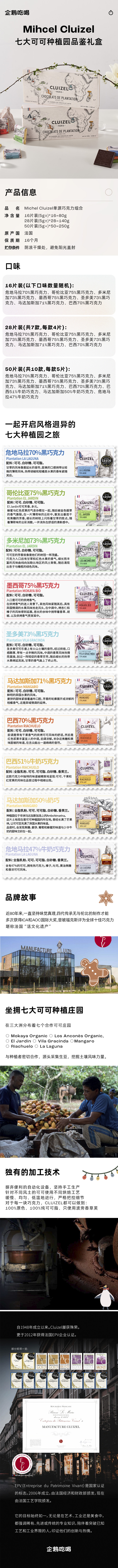 企鹅市集|法国Michel Cluizel单源巧克力礼盒 80g/140g/250g 巧克力金匠 探索7大种植庄园