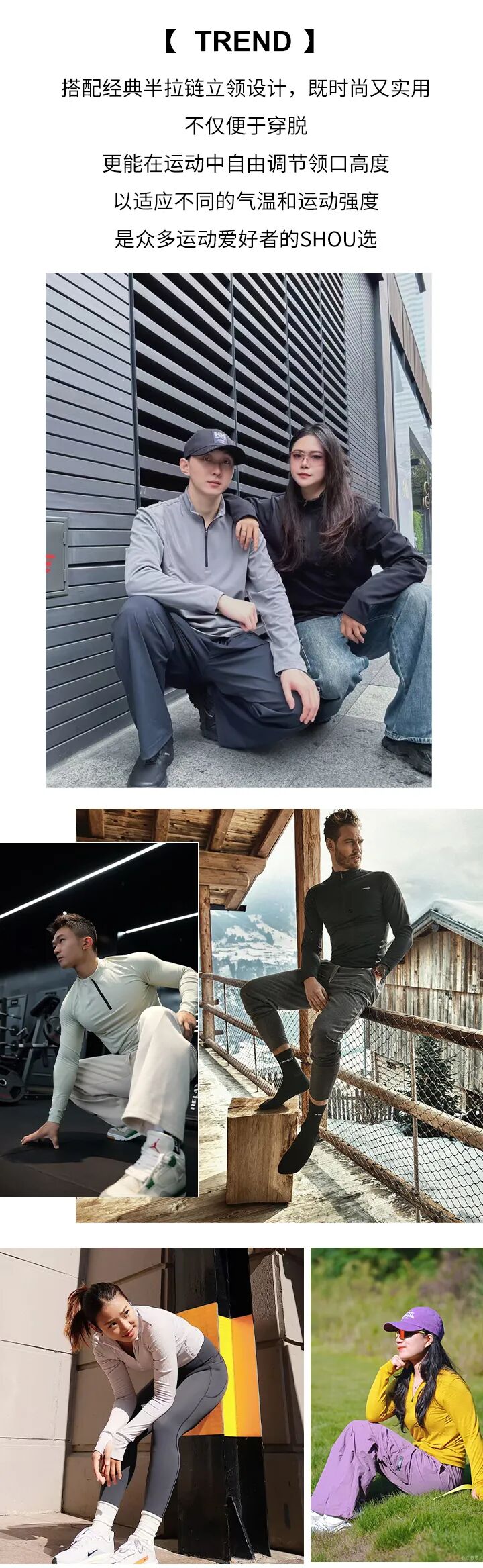 立领半拉链设计可阻挡冷风直灌颈部,半拉链设计让穿脱更灵活,户外通勤时可根据体感调节开合度,热了拉开透气,冷了拉上锁温;