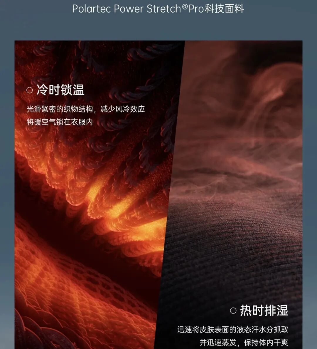 动态保暖性能,中间空气层形成天然隔热屏障,静止时可锁住体温(类似羽绒原理),运动时又能通过气流调节温度,比普通保暖面料更智能。