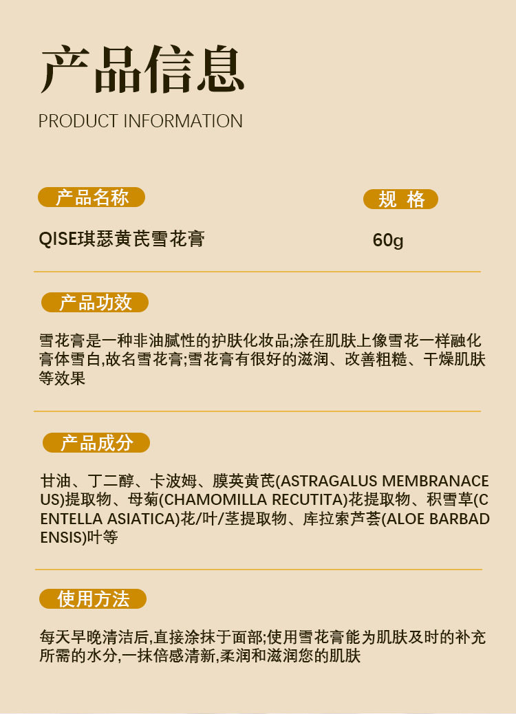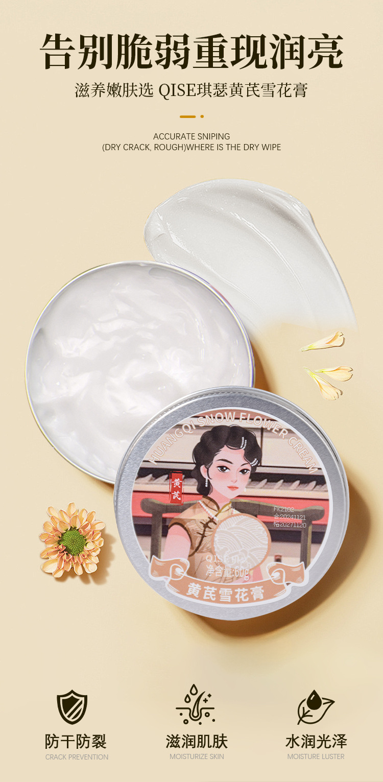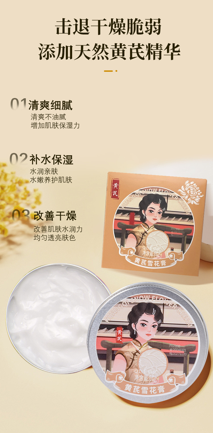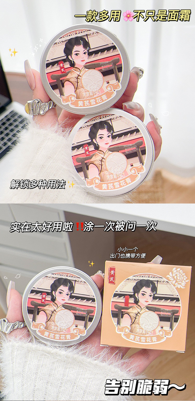 【19.9抢3盒❗️黄芪雪花膏🔥老牌国货】防干防裂,滋润肌肤,水润光泽,补水保湿护肤面霜不油腻润肤霜香水