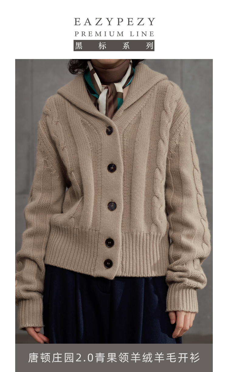 EAZYPEZY 2022AW 唐顿庄园2.0青果领羊绒羊毛开衫外套