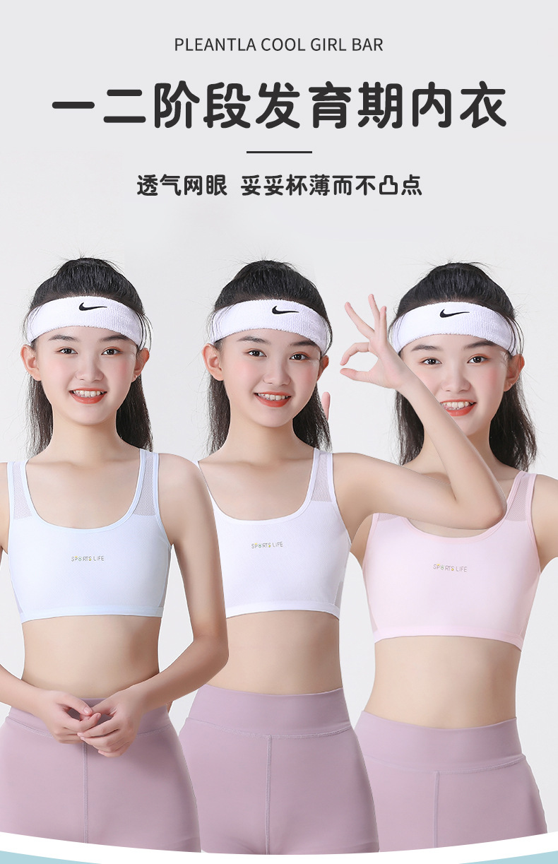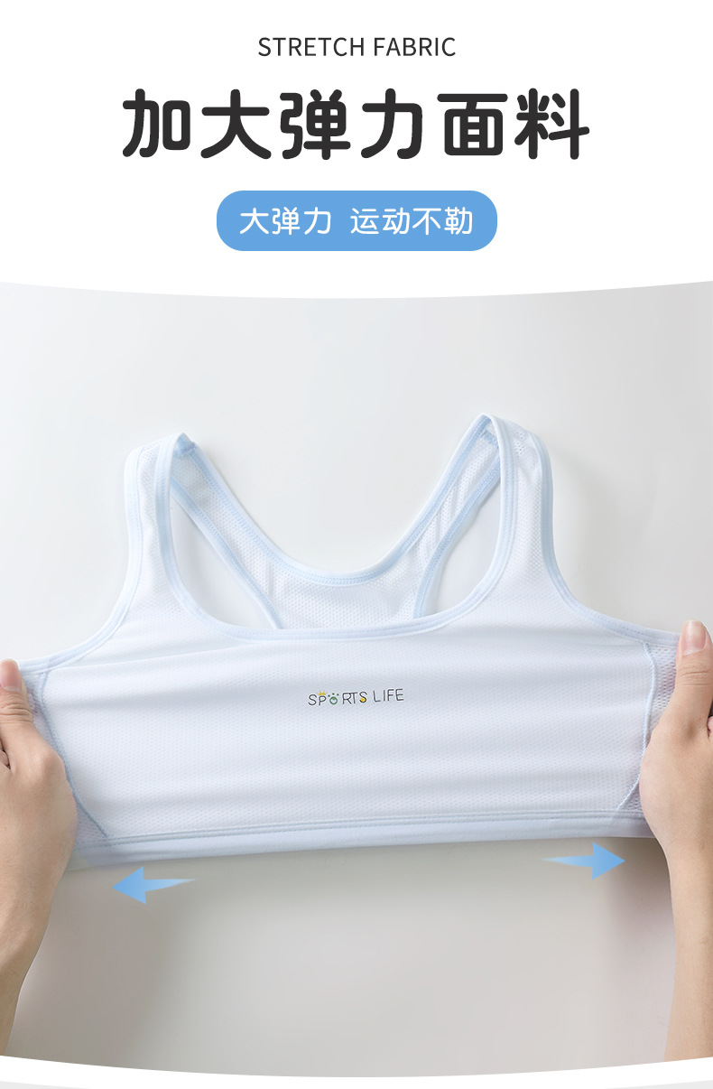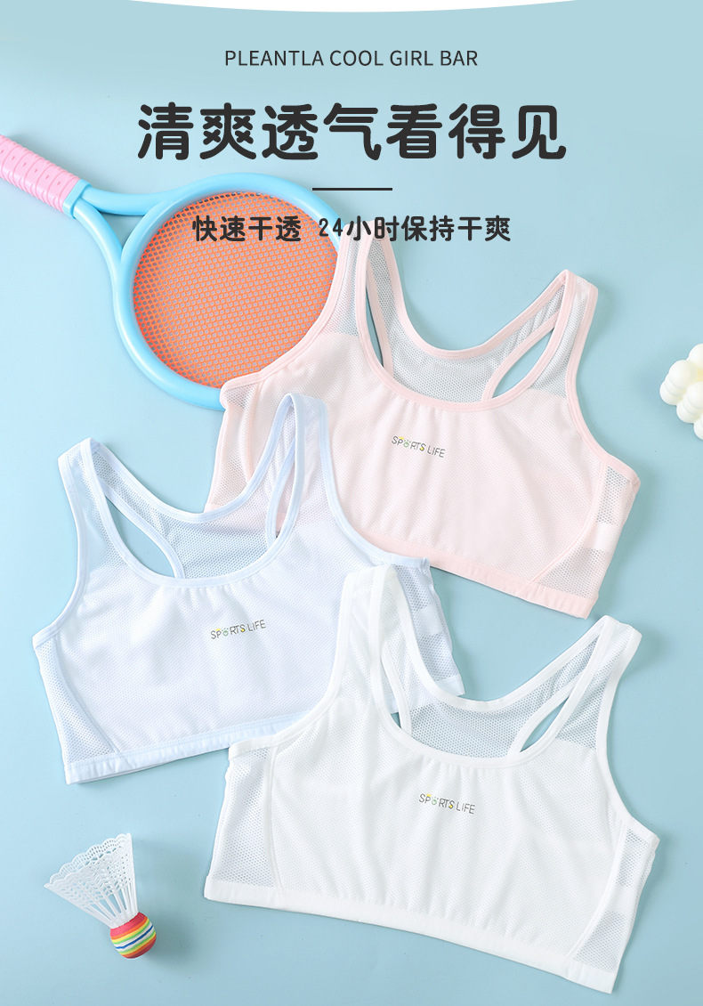 【超值49.9到手3件!】一阶段发育期运动内衣 女学生跑步防震工字背心 大童少女青春期文胸 透气网眼 妥妥杯薄而不凸点-QQ