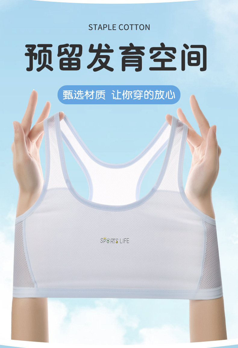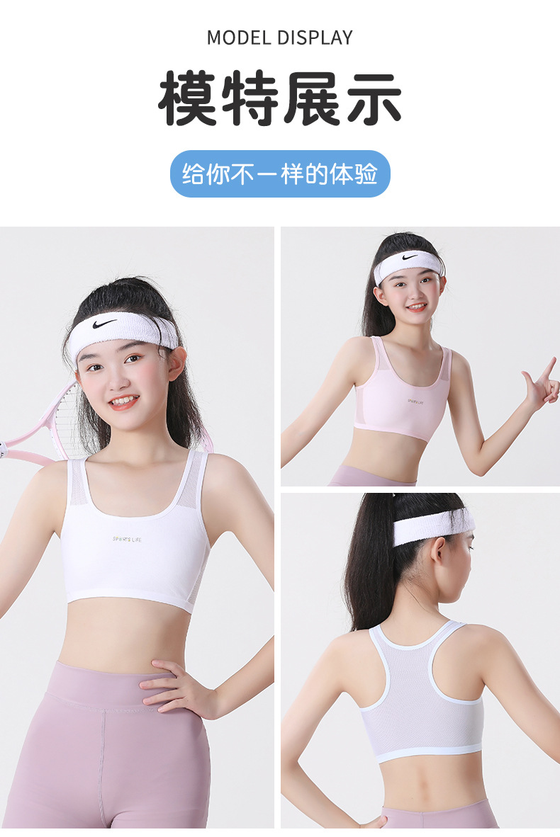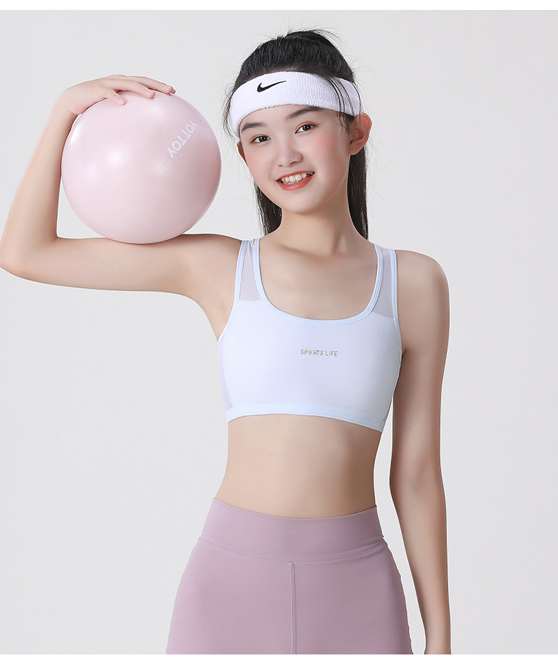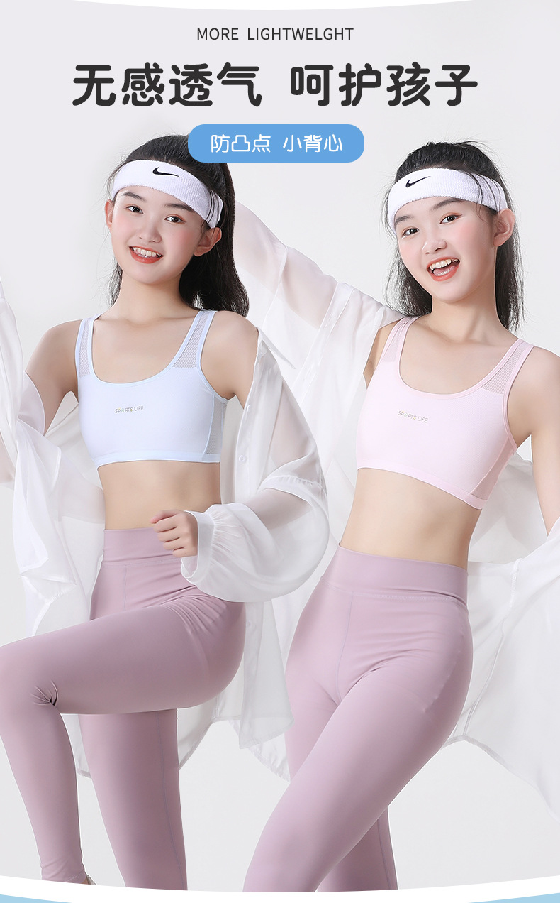 【超值49.9到手3件!】一阶段发育期运动内衣 女学生跑步防震工字背心 大童少女青春期文胸 透气网眼 妥妥杯薄而不凸点-QQ