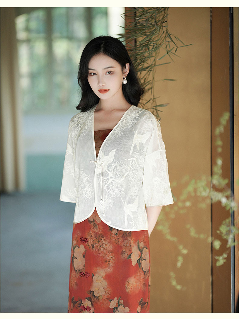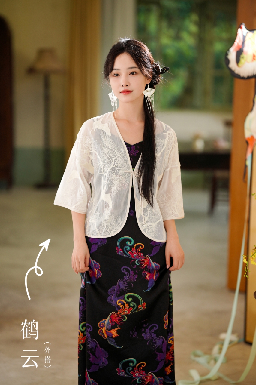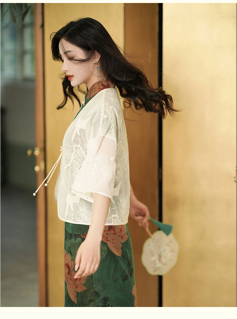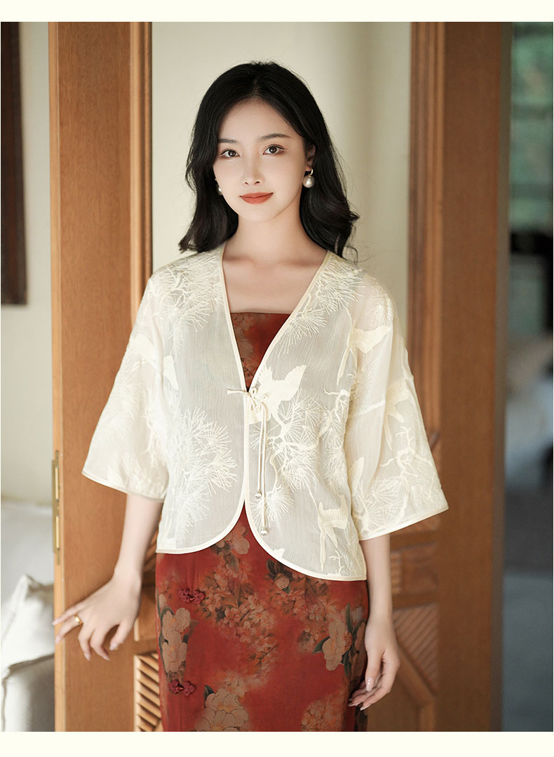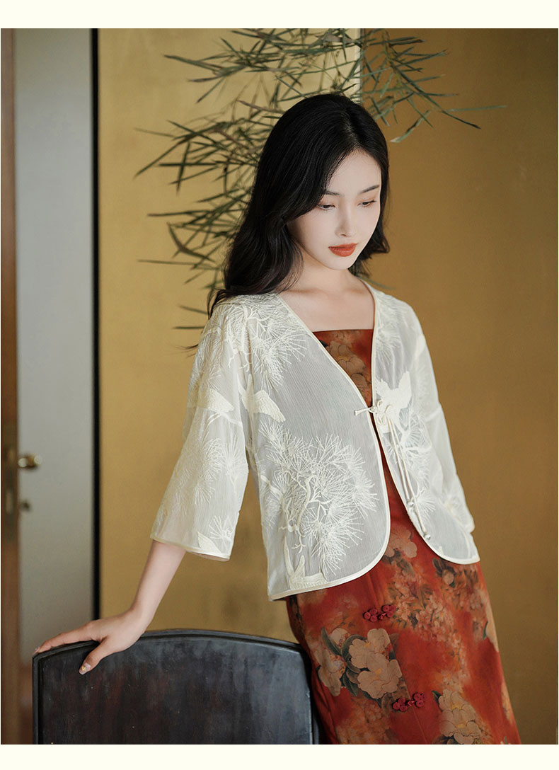 中式百搭刺绣仙鹤防晒旗袍外搭