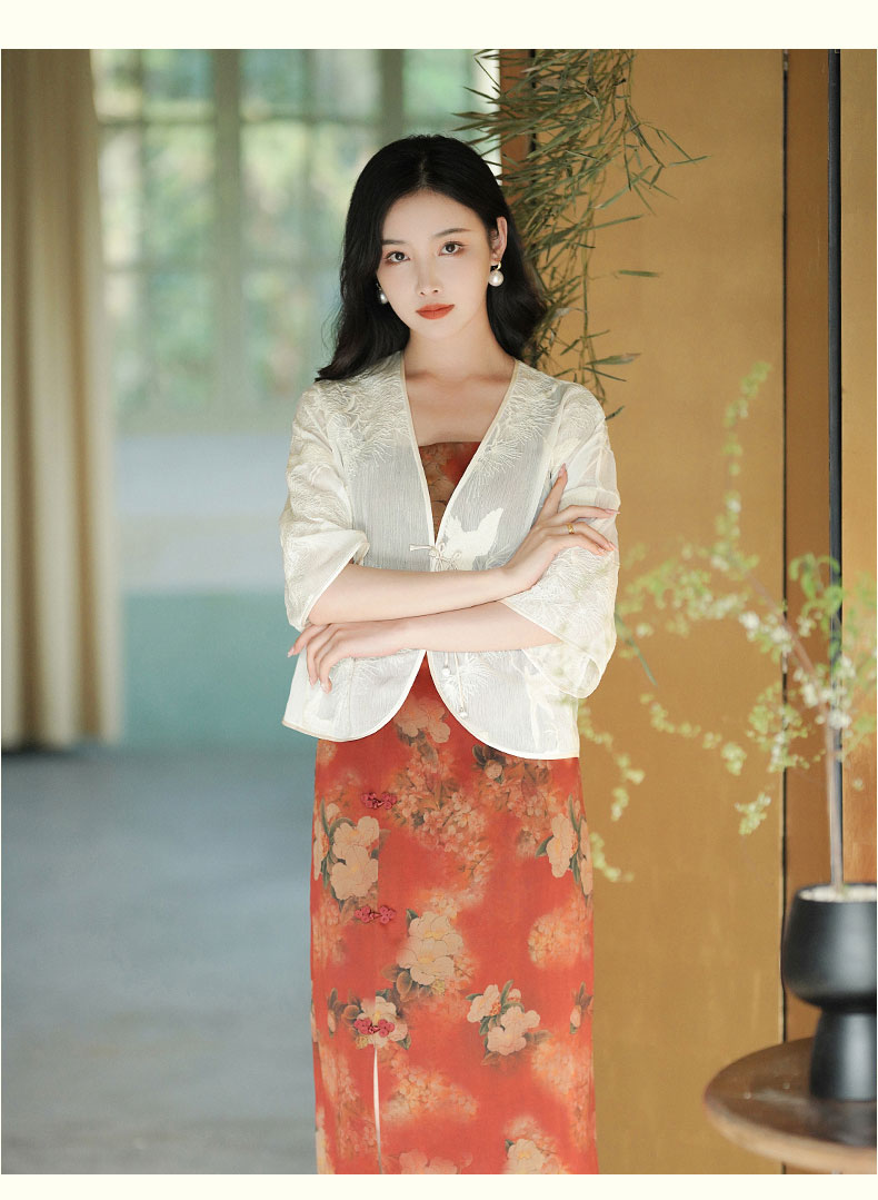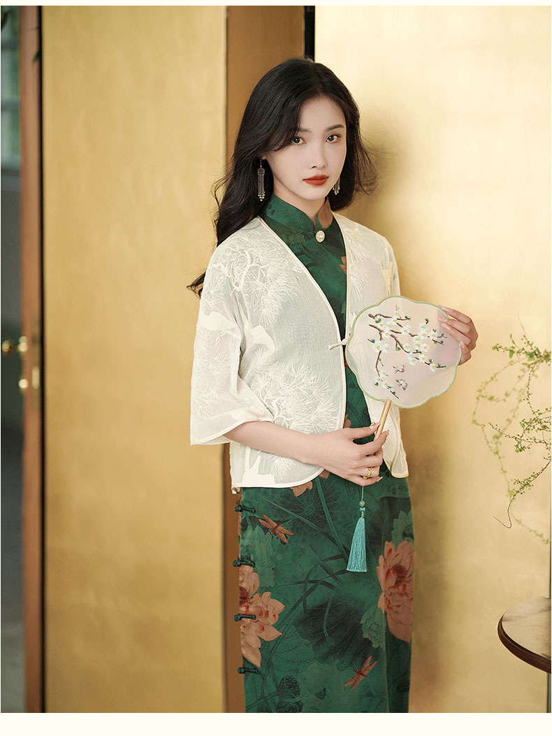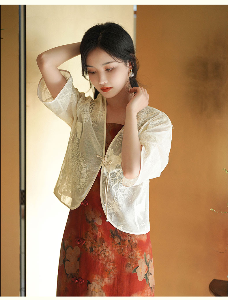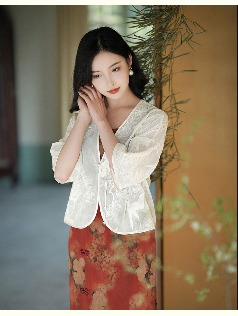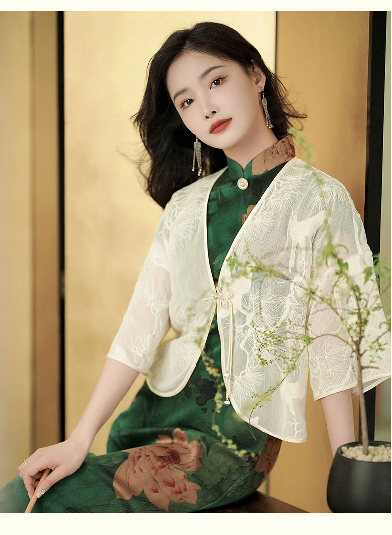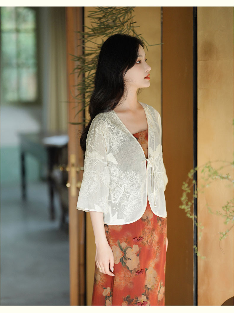 中式百搭刺绣仙鹤防晒旗袍外搭