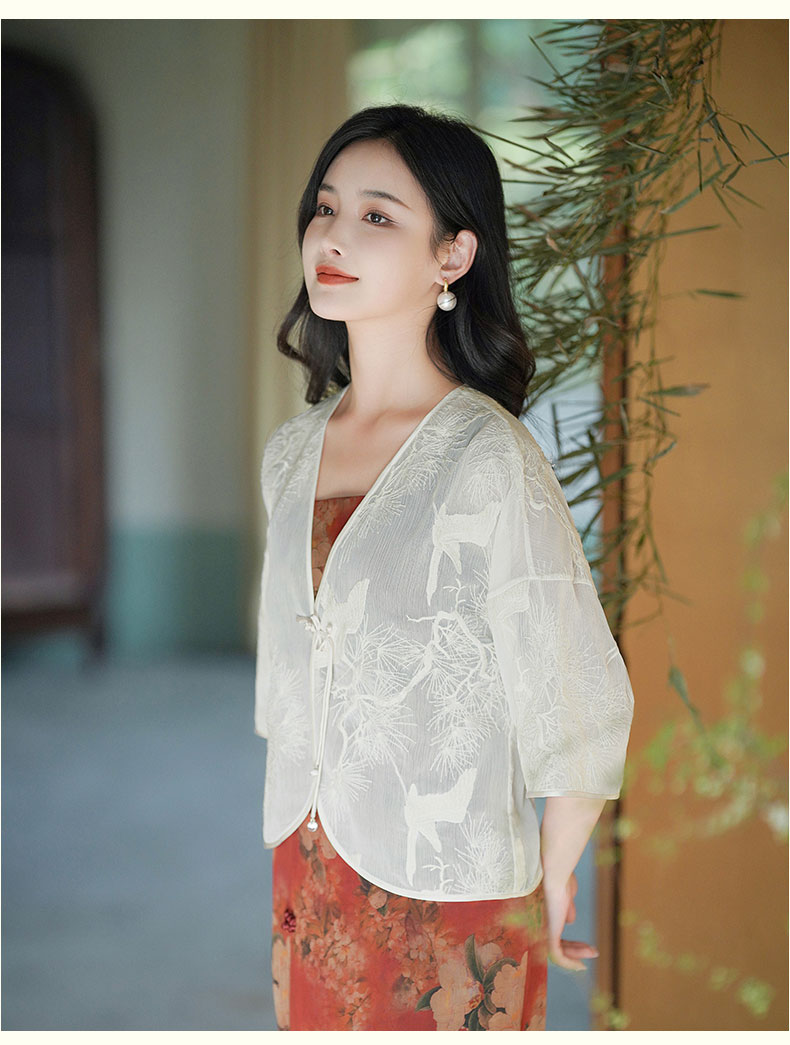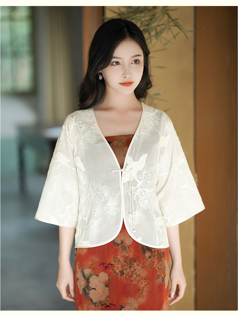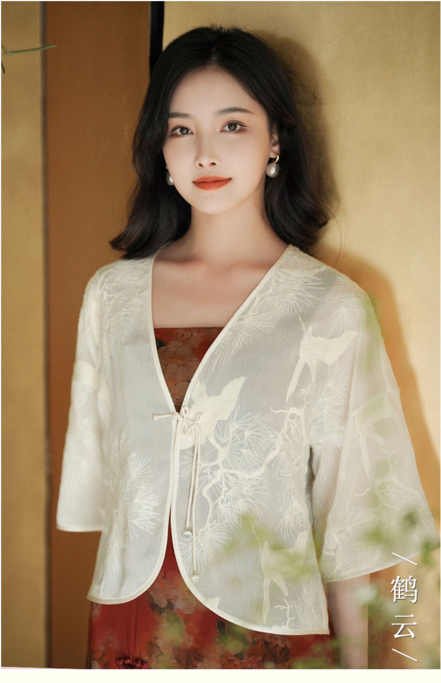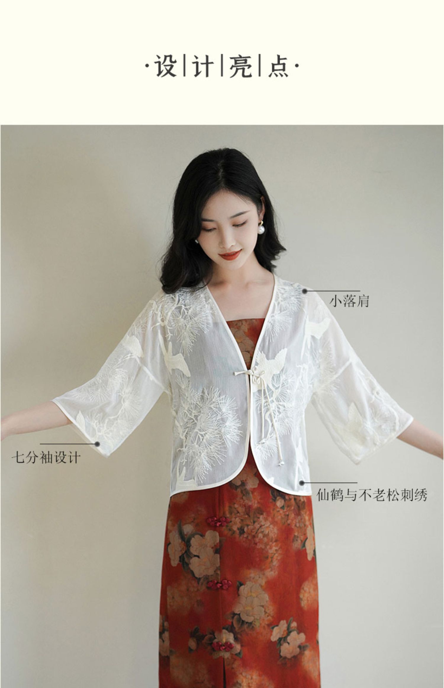 爆款推荐# 经典长青款#『鹤云』 中式百搭刺绣仙鹤空调衫防晒旗袍外搭,仙气十足的百搭中式外披!