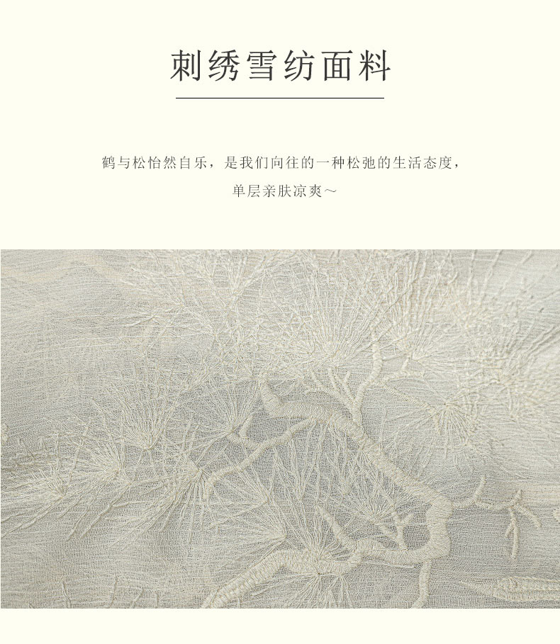 单层仙鹤不老松雪纺刺绣,亲肤凉爽