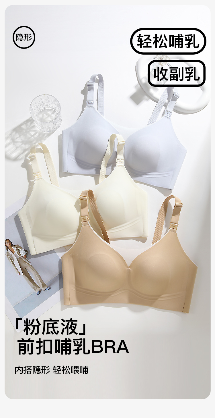 【隐形粉底肤】无痕轻薄透气兔耳杯哺乳孕妇内衣女便捷前开扣低吟浅笑