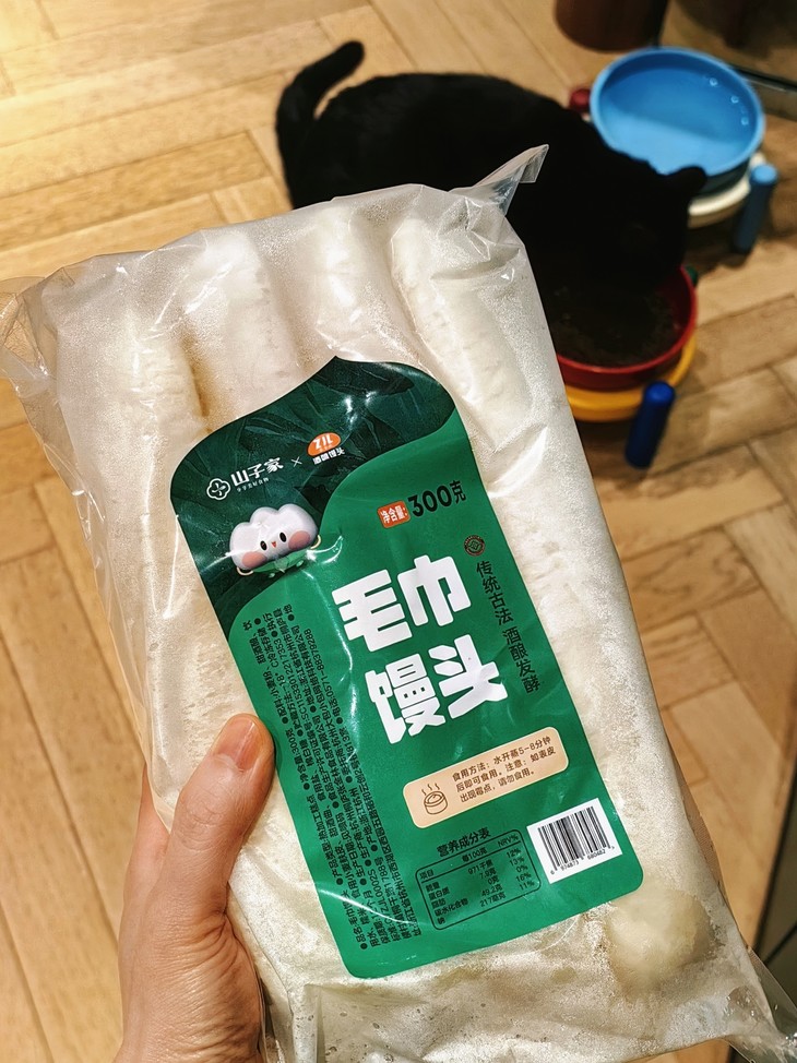 每袋毛巾馒头净含量300克,内含4个。收到放冰箱冷冻,可以长达12个月,随时想吃,只要蒸5-8分钟,就能热气腾腾的上桌了!咬一口便能感受到它与普通酵母馒头的区别,手指轻轻一按,馒头迅速回弹,用力撕扯,呈现出藕断丝连的韧劲。哪怕放凉了,依然保持柔软湿润,不会干硬!