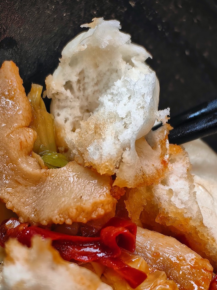 四季流转,毛巾馒头也能应时而变,演绎出不同美味:春日夹上鲜嫩笋丁、翠绿毛豆与爽口雪菜,一口尝尽山野清新;盛夏搭配凉菜卤藕、弹牙腐竹,清凉开胃;金秋时节裹着香甜桂花蜜、鲜辣蟹黄辣酱,碰撞出奇妙的味觉火花;寒冬腊月夹上热腾腾的排骨或卤牛肉,瞬间驱散寒意!反正家里有什么就夹什么,分分钟变身中式汉堡,干光剩菜!