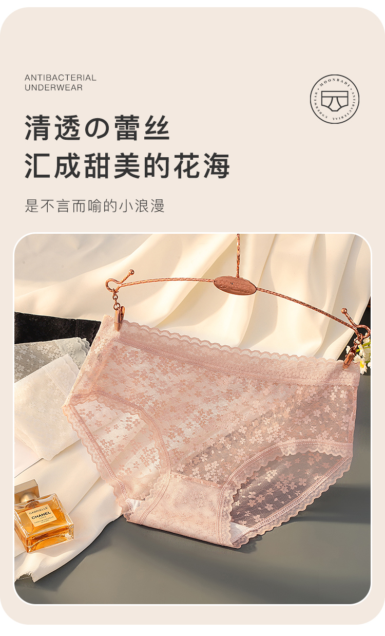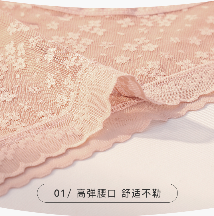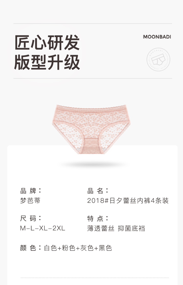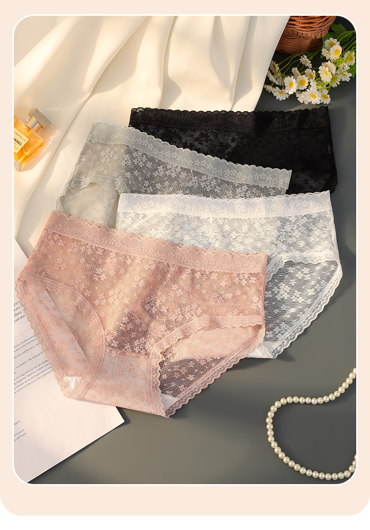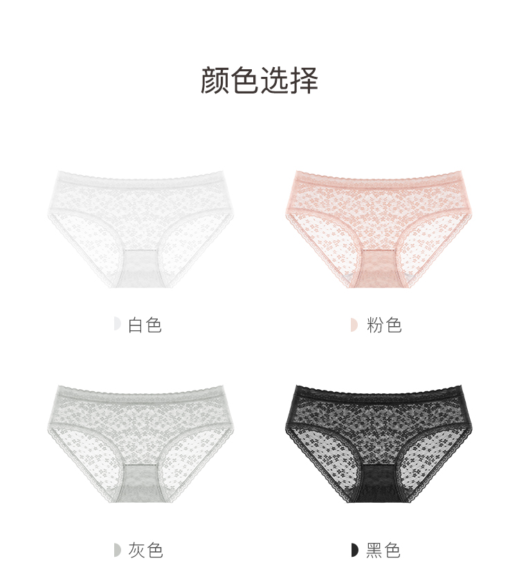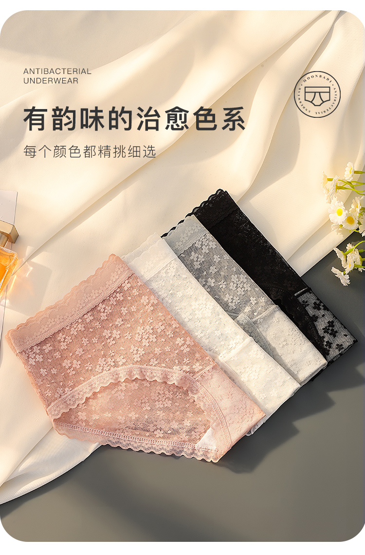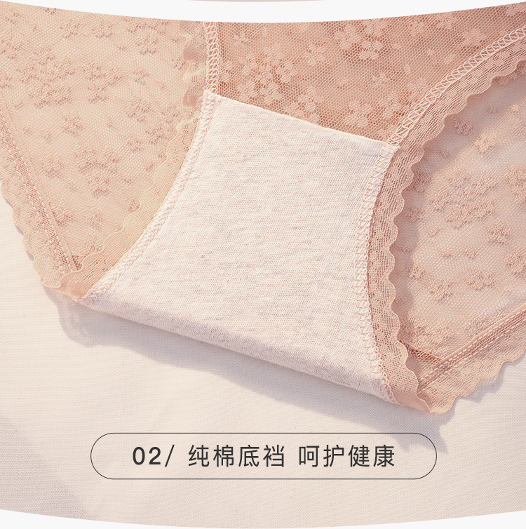 纯欲蕾丝抑菌全棉档内裤女轻薄半透蕾丝三角内裤2018#日夕蕾丝内裤4条装