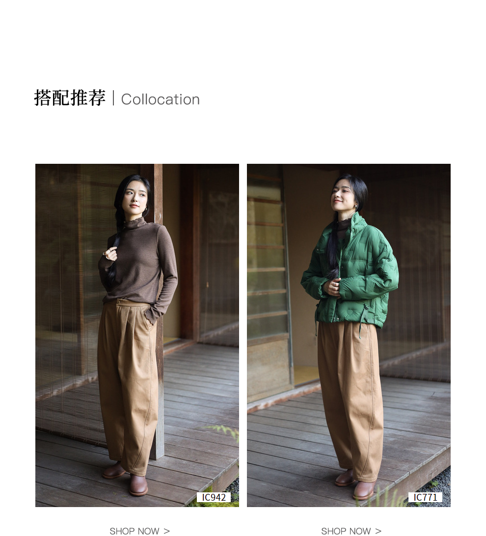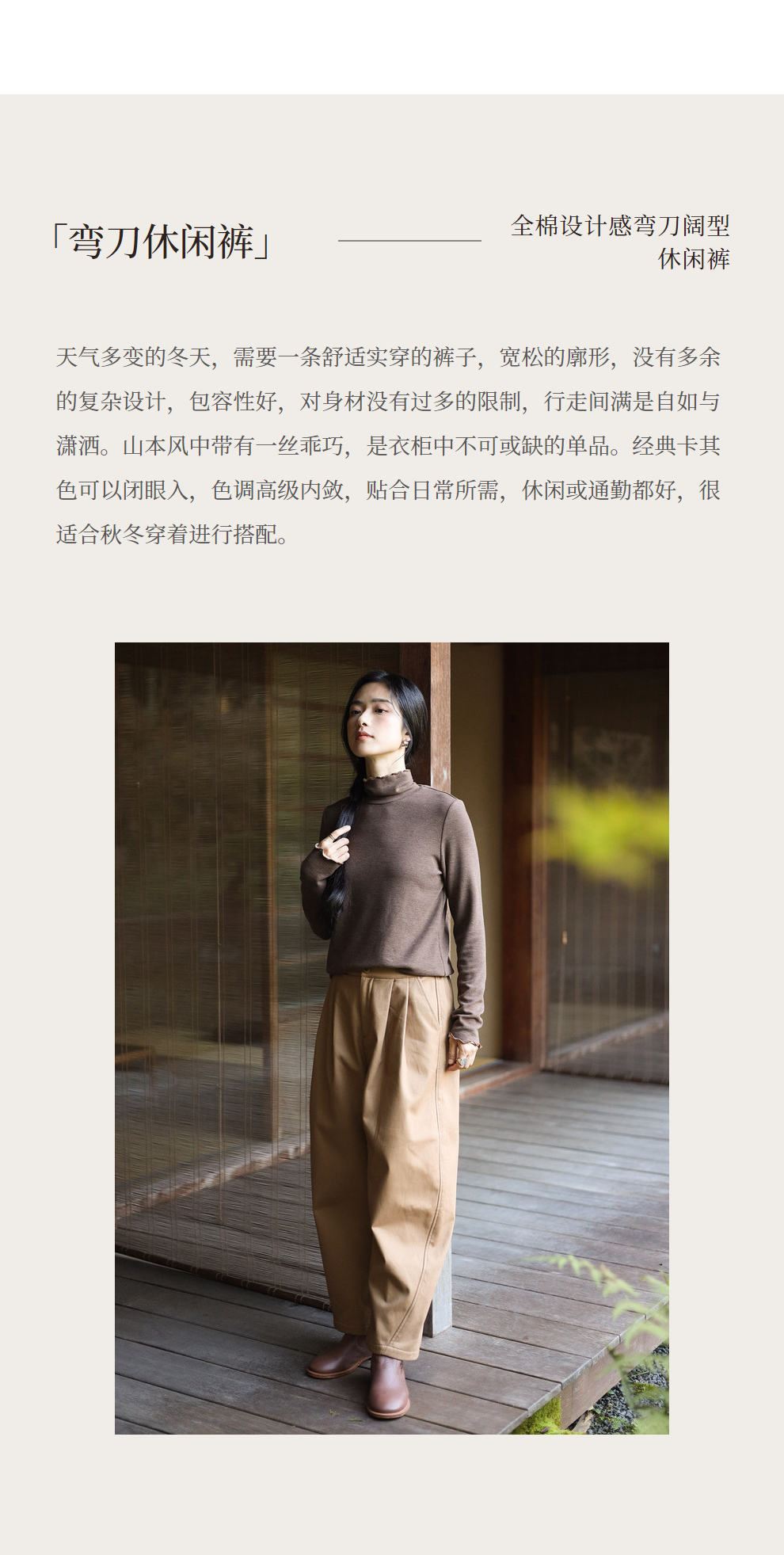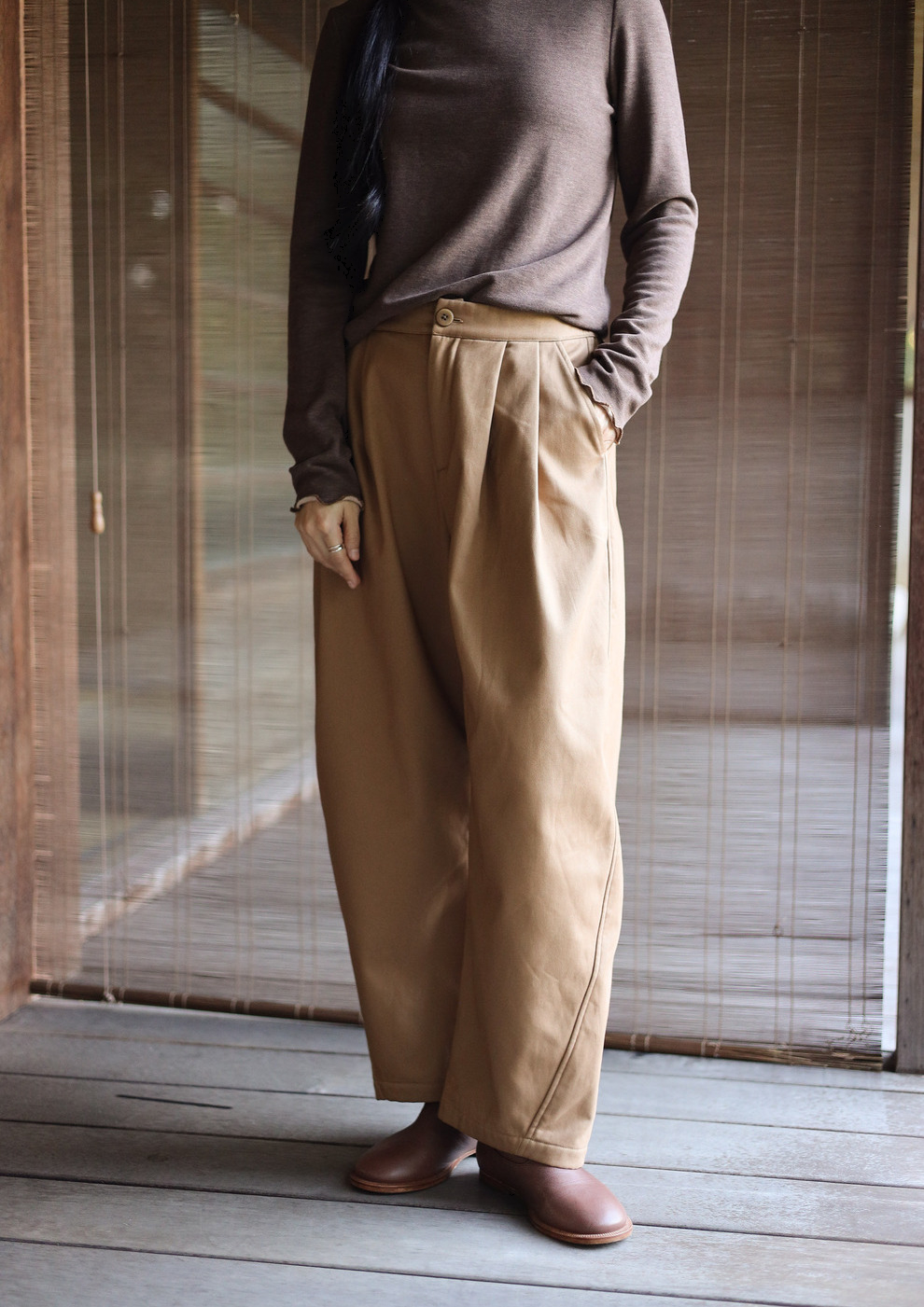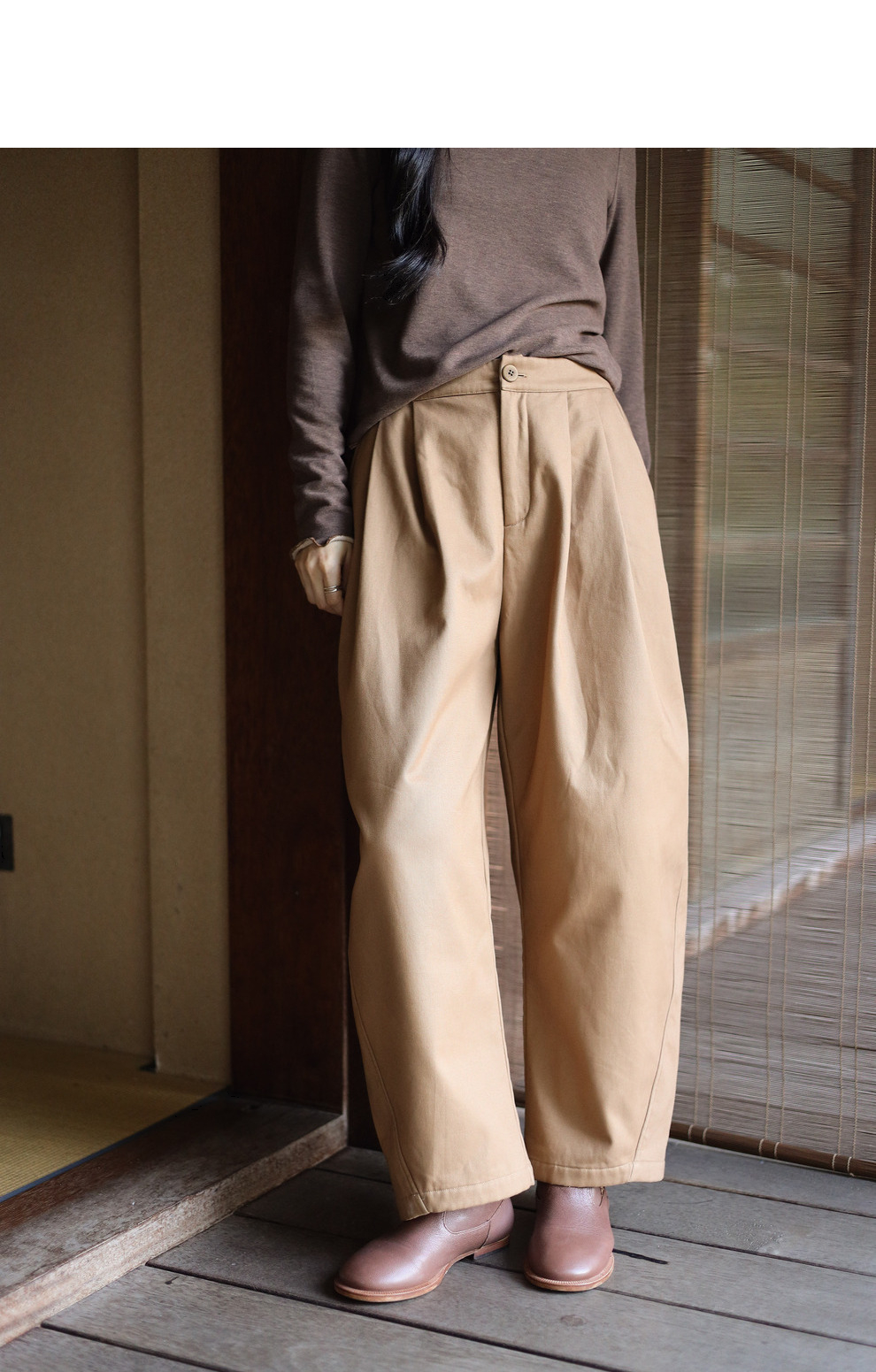绽放830朵/卡其色设计感弯刀廓形加绒加厚双压褶插袋斜纹棉休闲裤
