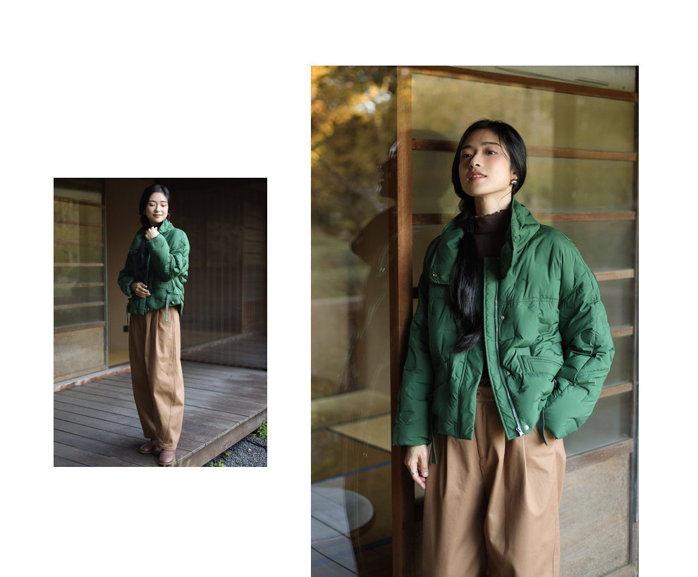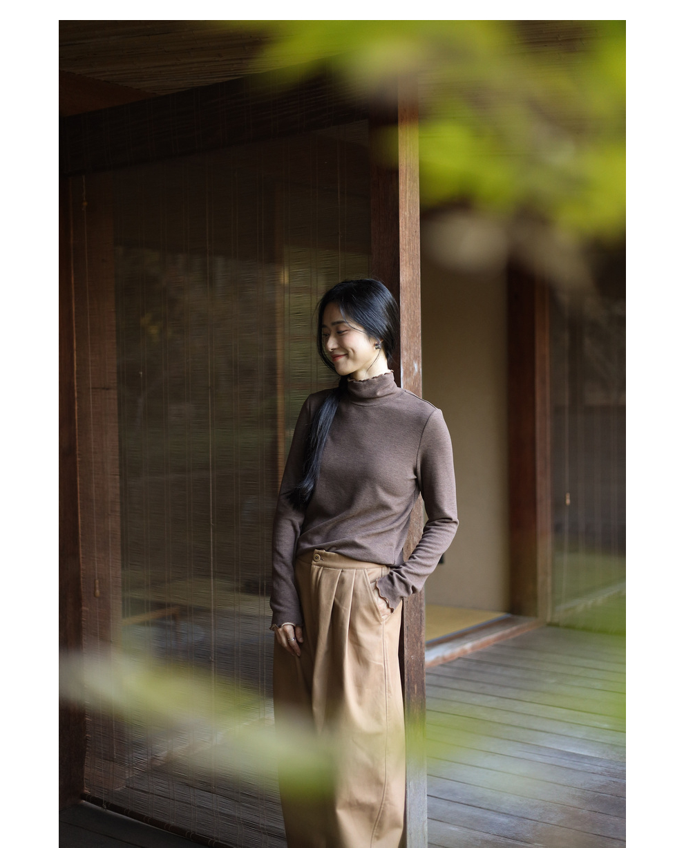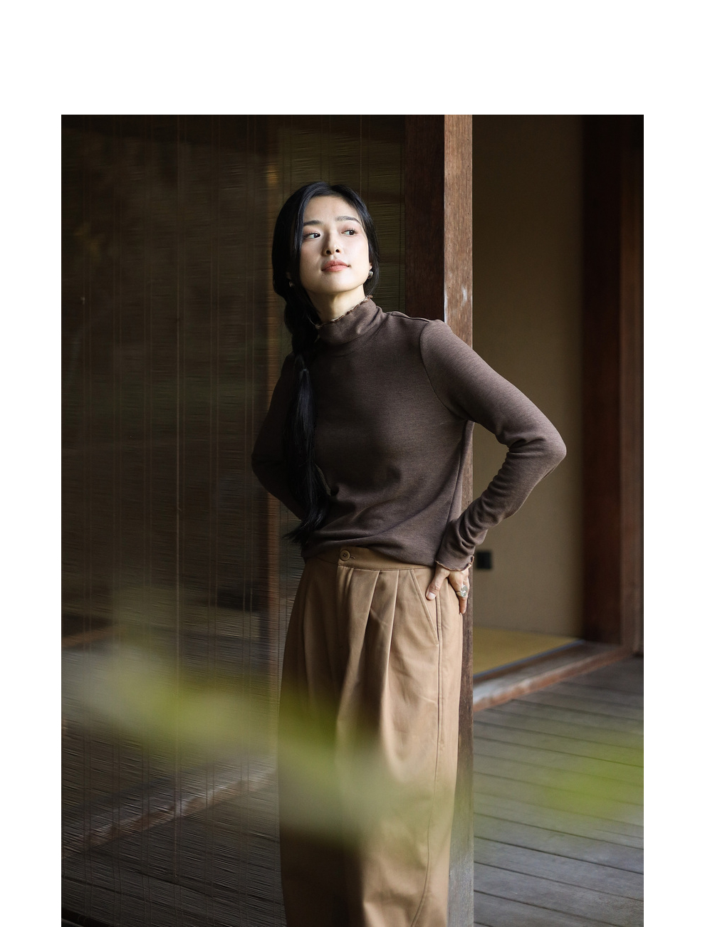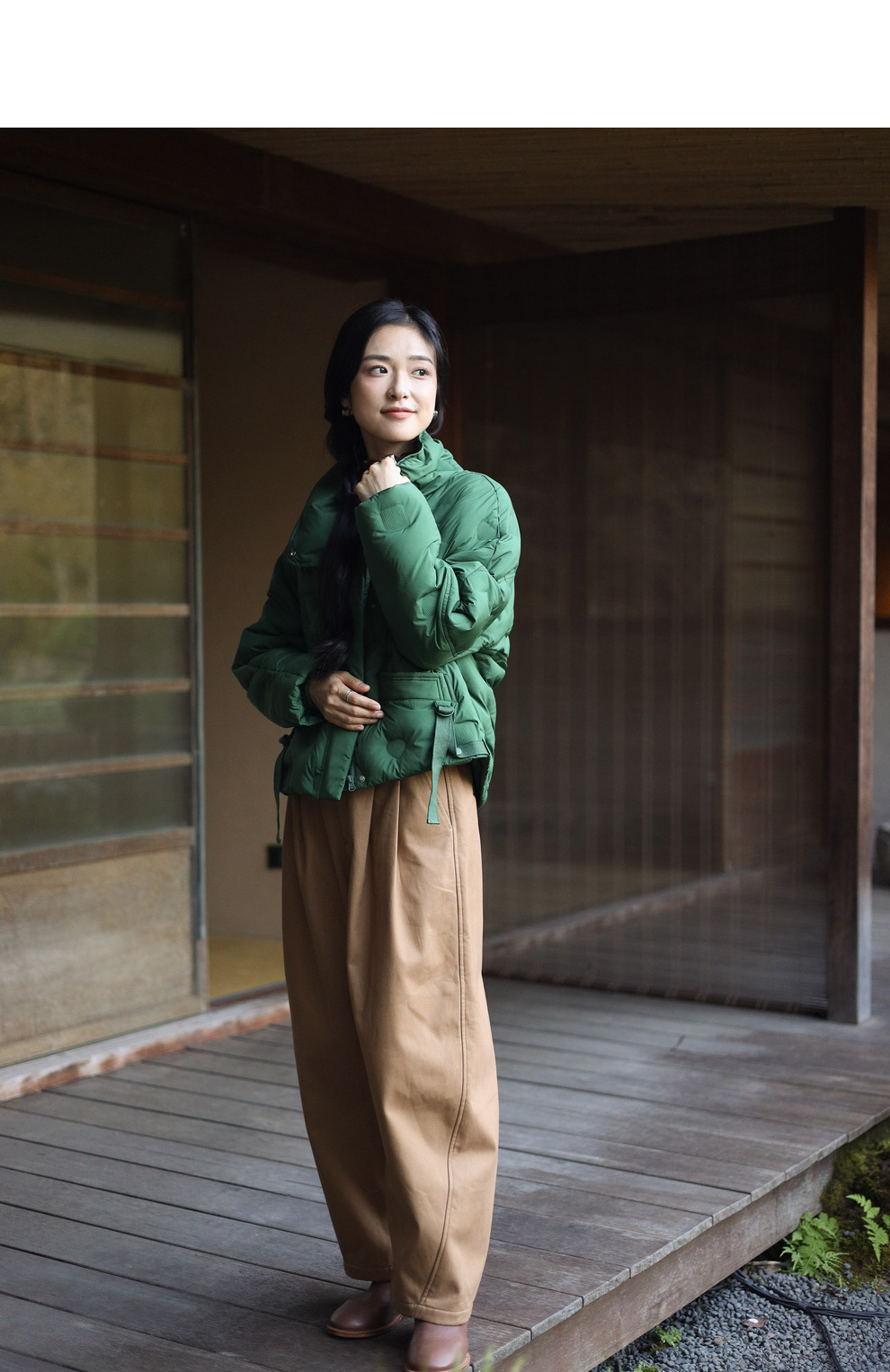 绽放830朵/卡其色设计感弯刀廓形加绒加厚双压褶插袋斜纹棉休闲裤