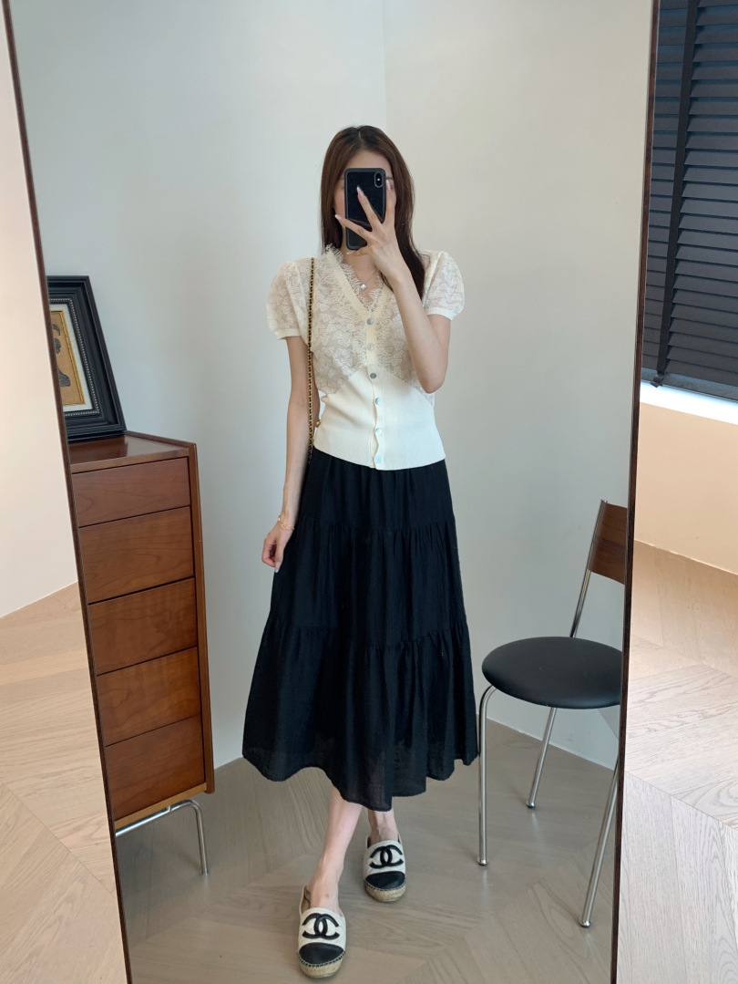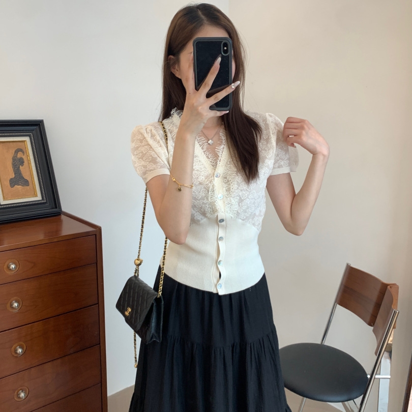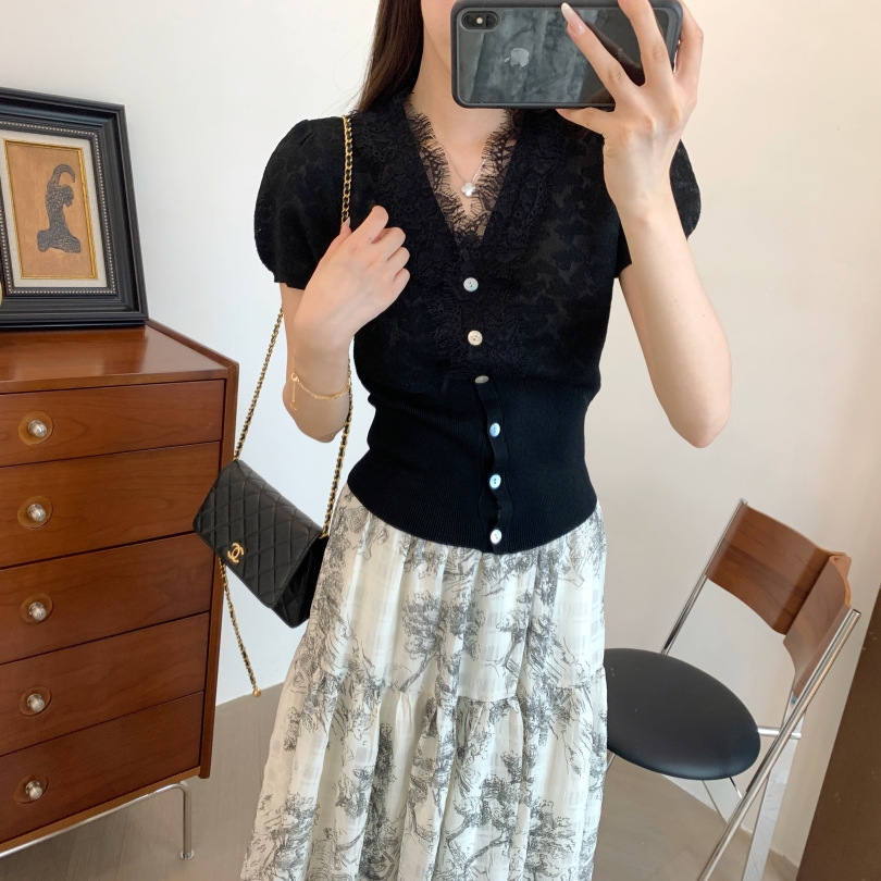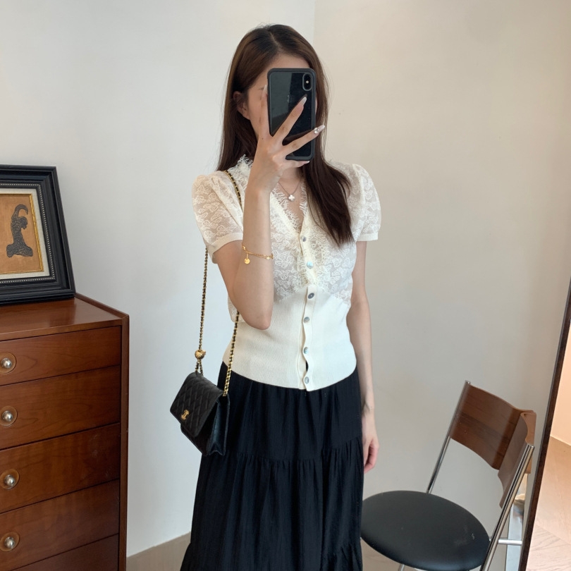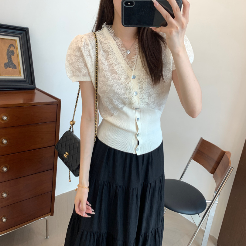版型就是小款式,精致优雅款,蕾丝提花+睫毛花边温柔,不仅单穿,西服里内搭也超漂亮。