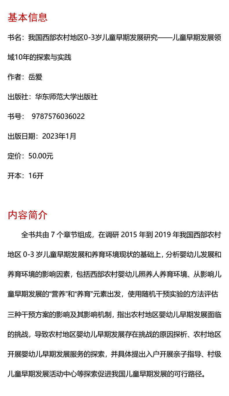 我国西部农村地区0-3岁儿童早期发展研究 儿童早期发展领域10年的探索与实践