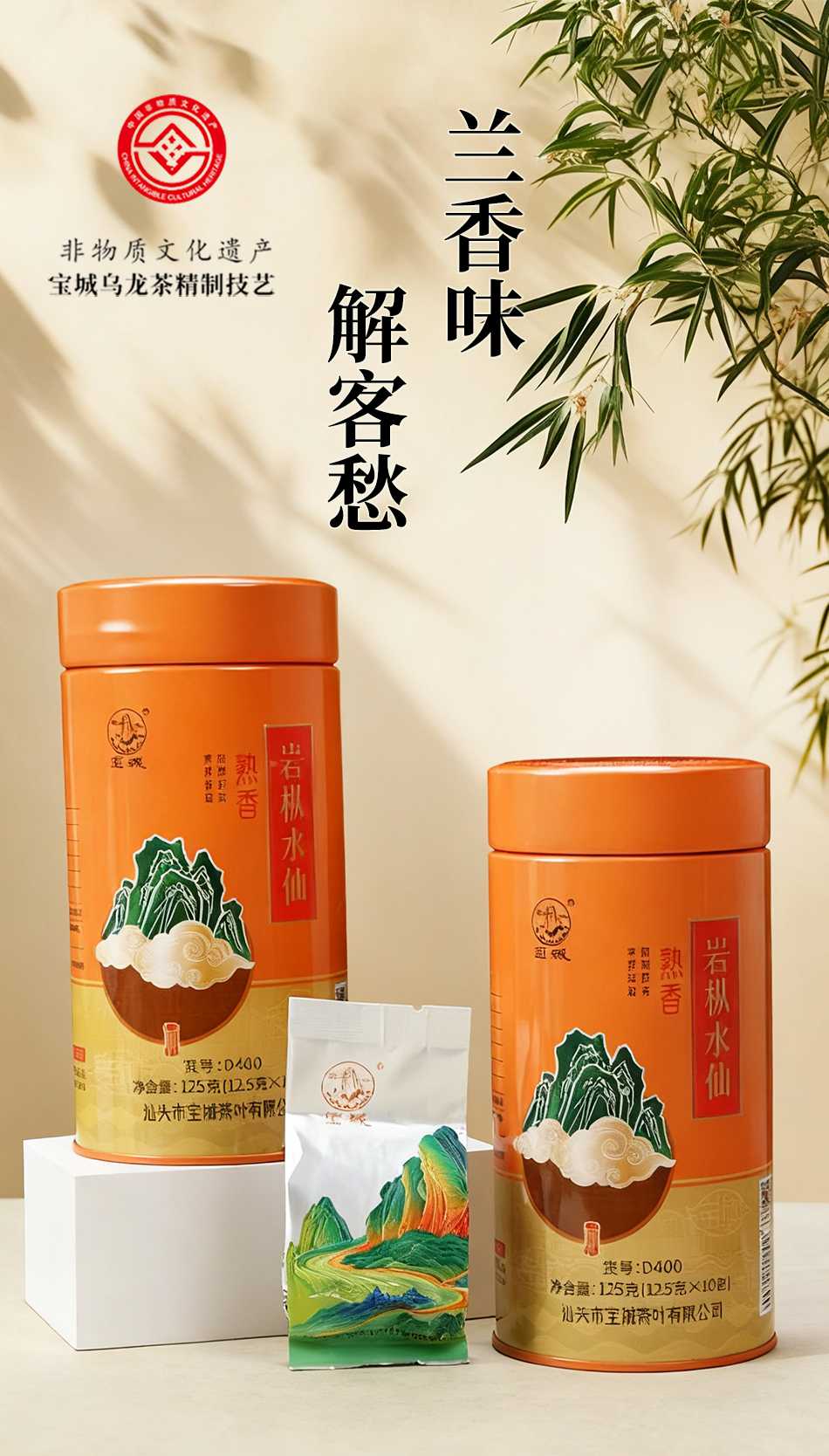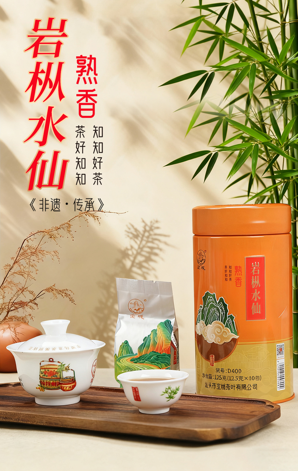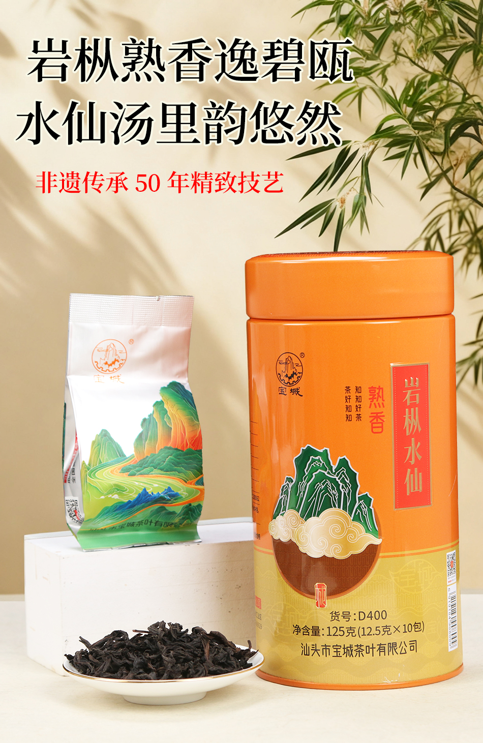 宝城熟香岩枞水仙茶叶4罐装共500克小泡装礼盒浓香型乌龙茶岩茶D400