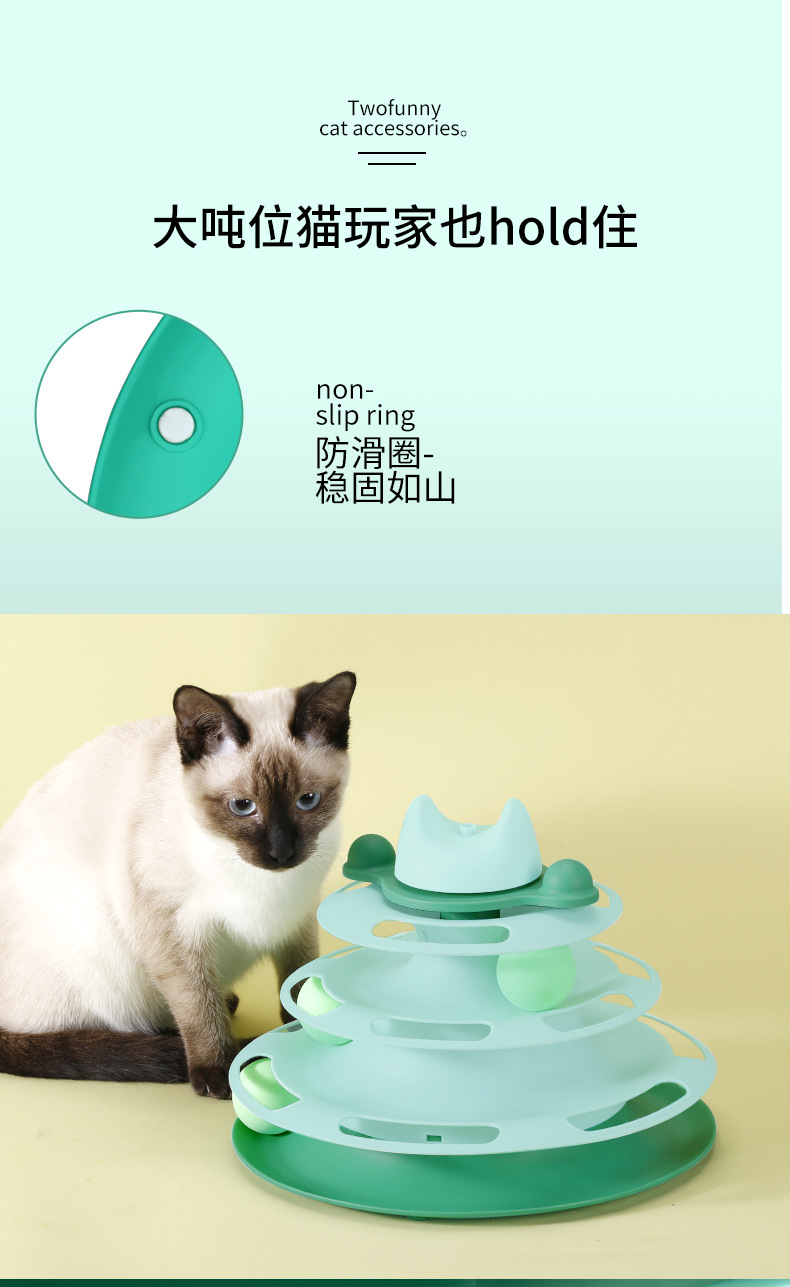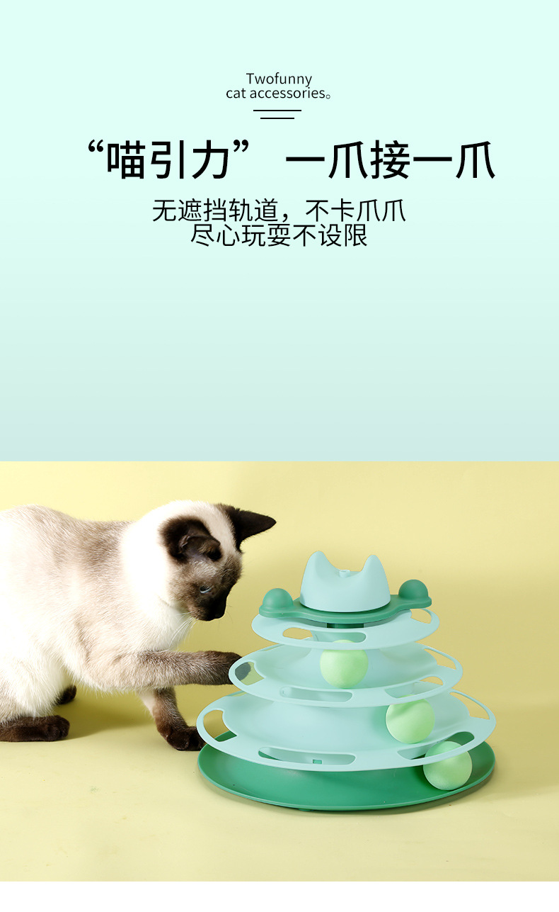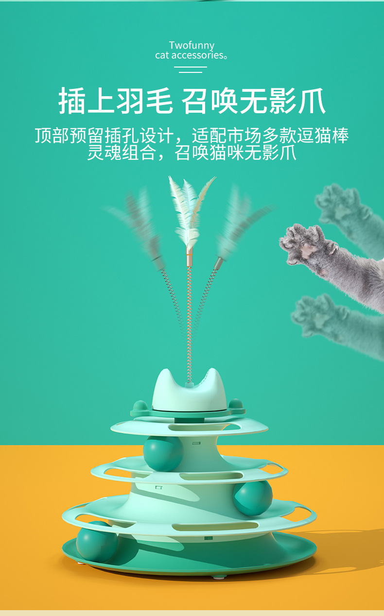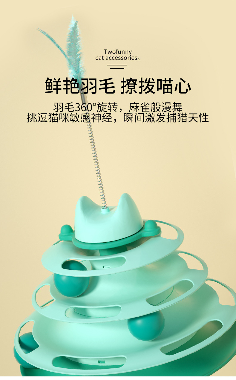 严选猫玩具【四层旋转球绿色+羽毛】猫咪游乐盘自动逗猫棒羽毛小猫转盘球1个