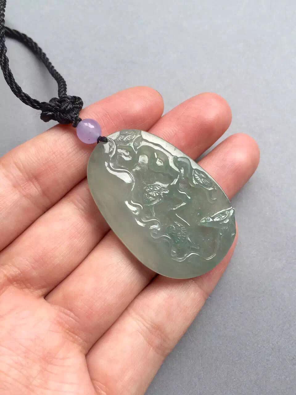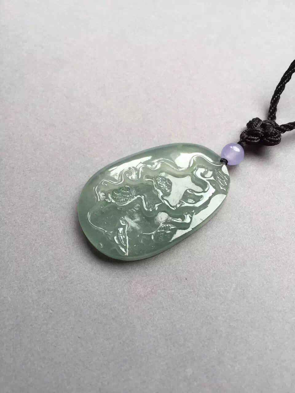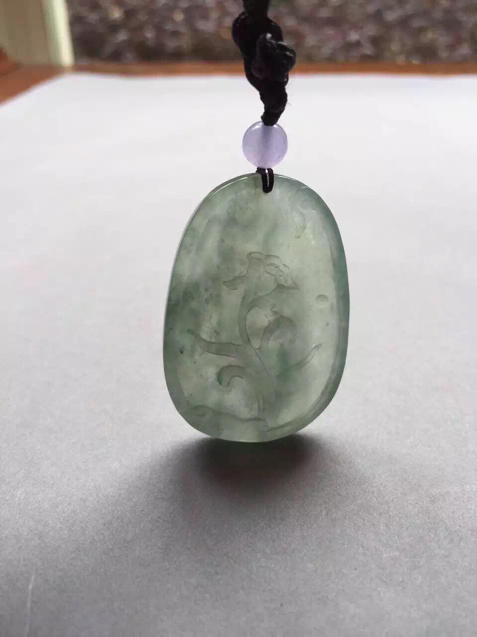 别致高雅的翡翠四君子,梅兰竹菊之梅牌,这类牌子很少,非常特色。手工精雕,尺寸大气,题材温文尔雅,非常有文化内涵的作品,冰种淡晴水底色,尺寸43.1*28.8*6.6mm,雅趣,留给有文化有品味的朋友