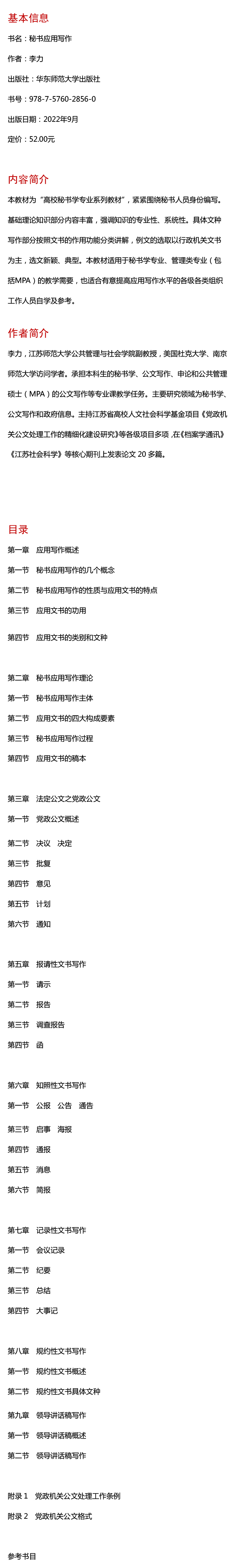 秘书应用写作 李力 高校秘书学专业系列教材 正版 华东师范大学出版社
