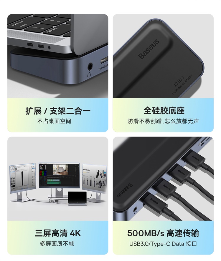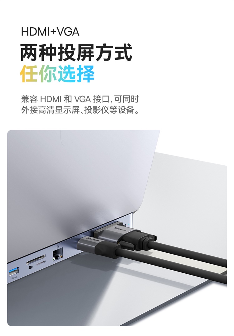 倍思 速享二代 十一合一 HUB扩展坞 (Type-C to HDMI*1+USB3.0*3+PD*1+VGA*1+SD/TF*1+RJ45*1+Type-C Data*1+3.5mm*1)