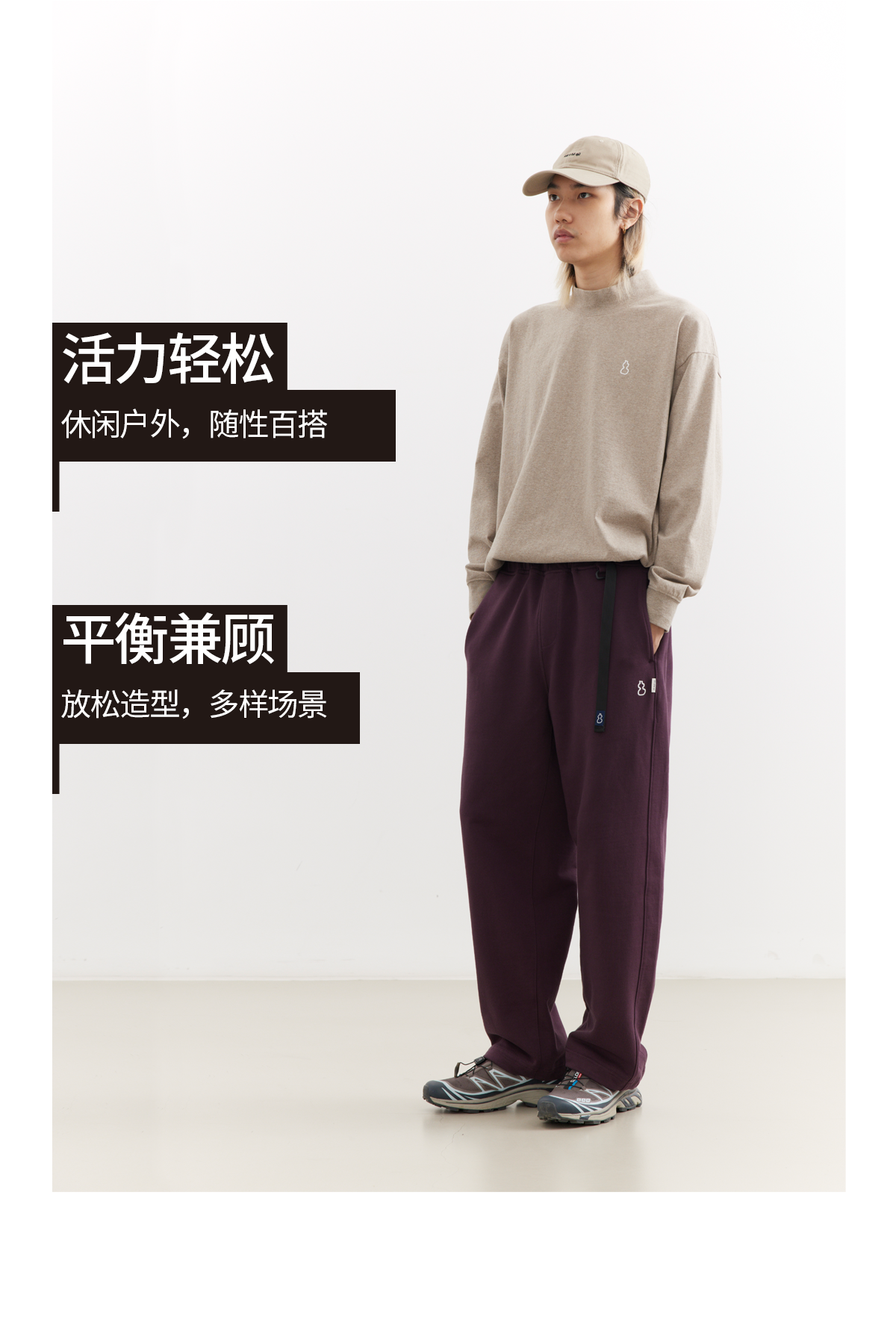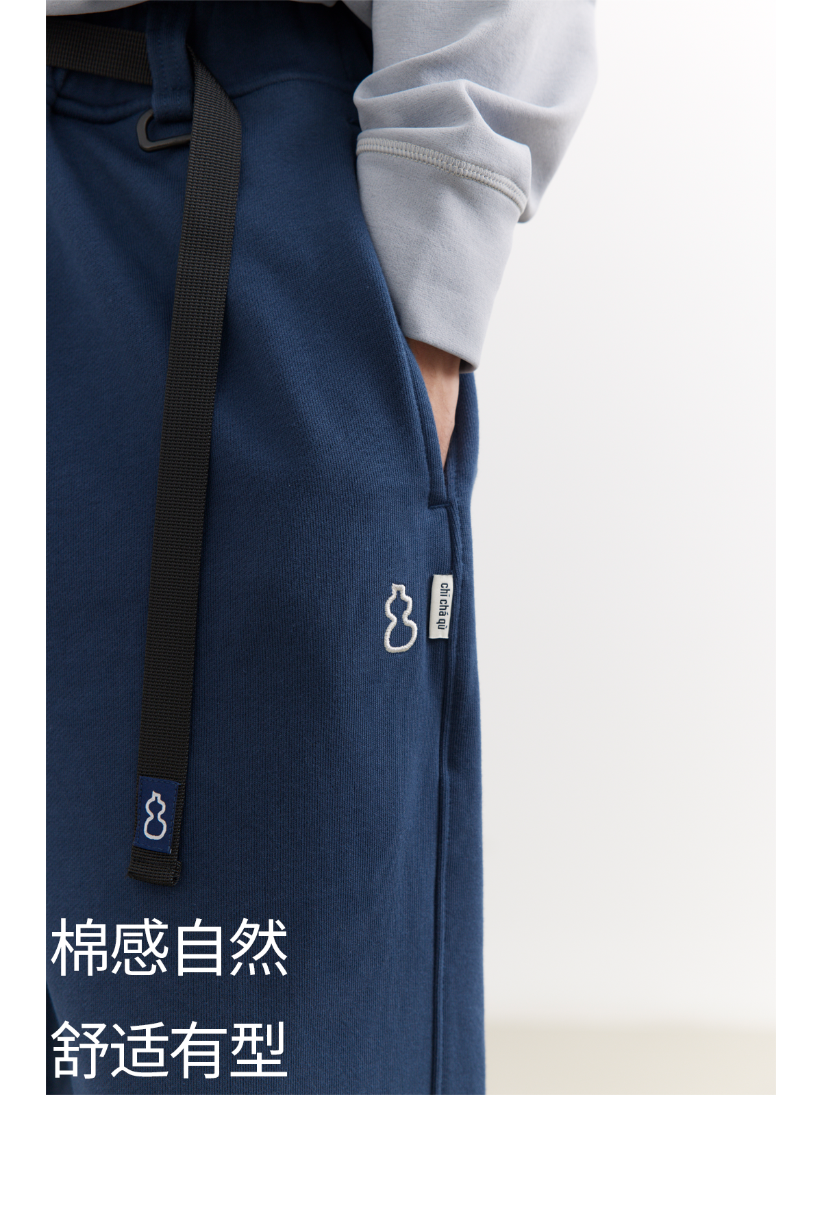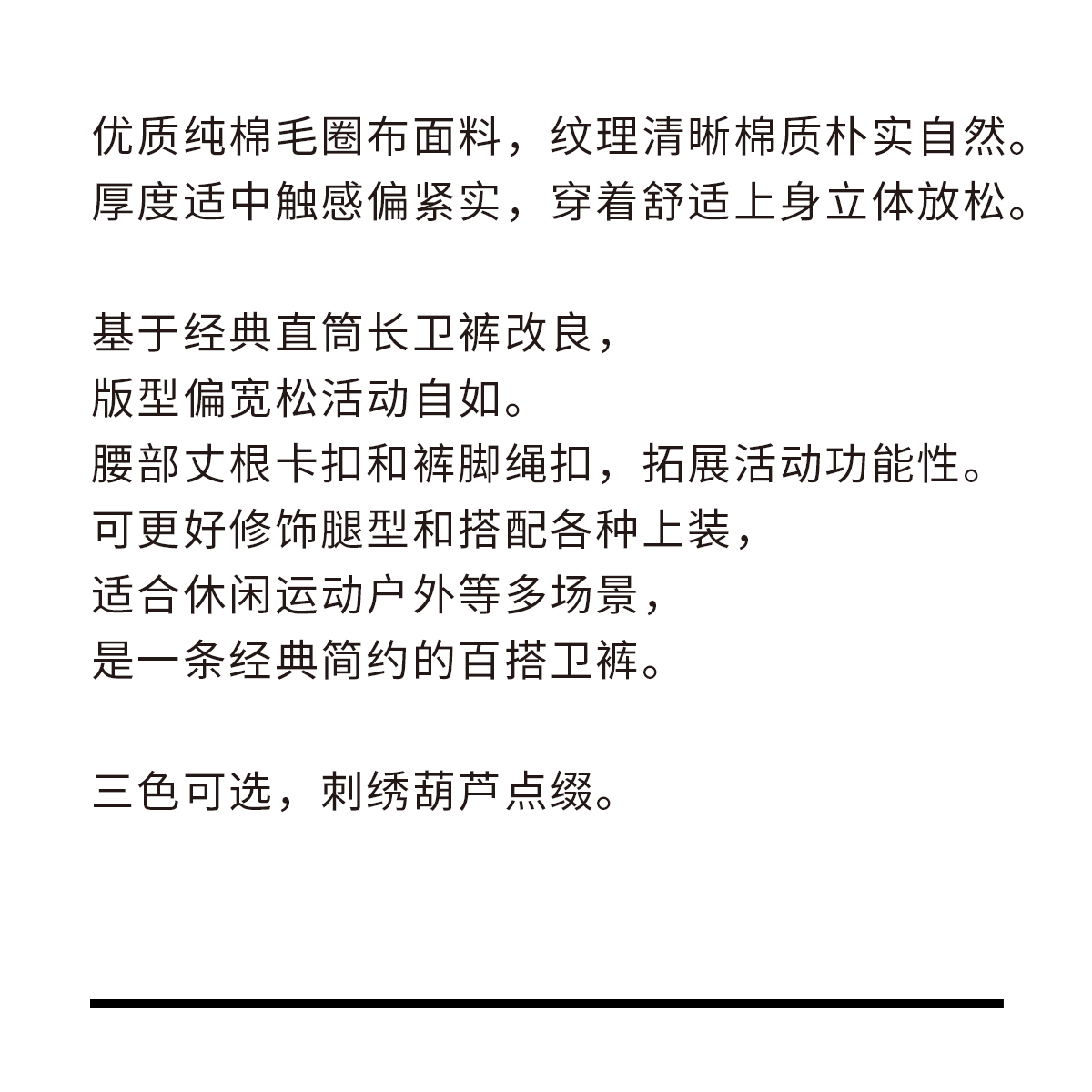 吃茶去chichaqu25经典全棉宽松直筒卡扣长卫裤复古运动休闲百搭