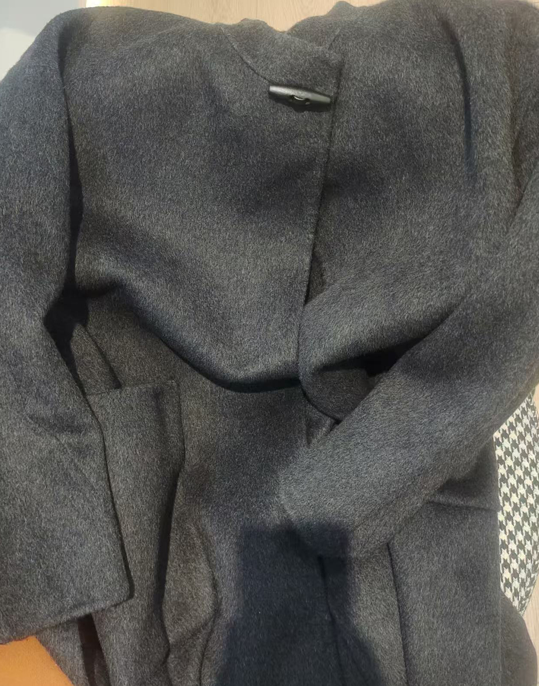 这件大衣采用的内蒙古阿尔巴斯山羊绒,轻、柔、暖皆好得没话说,光泽质感胜过市面上大多数羊绒衫。