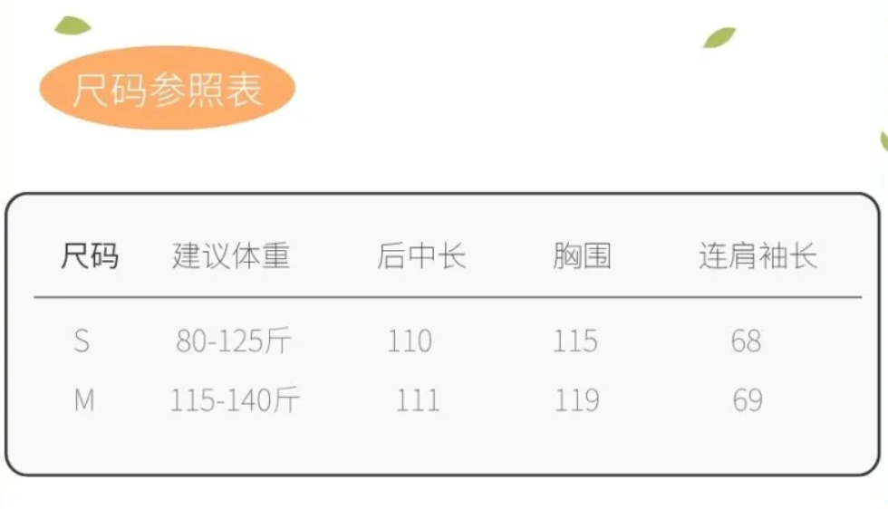 S、M两种尺码,80-140斤的姐妹都能穿。