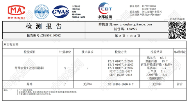 ▲面料含量,在5%为合理误差范围内