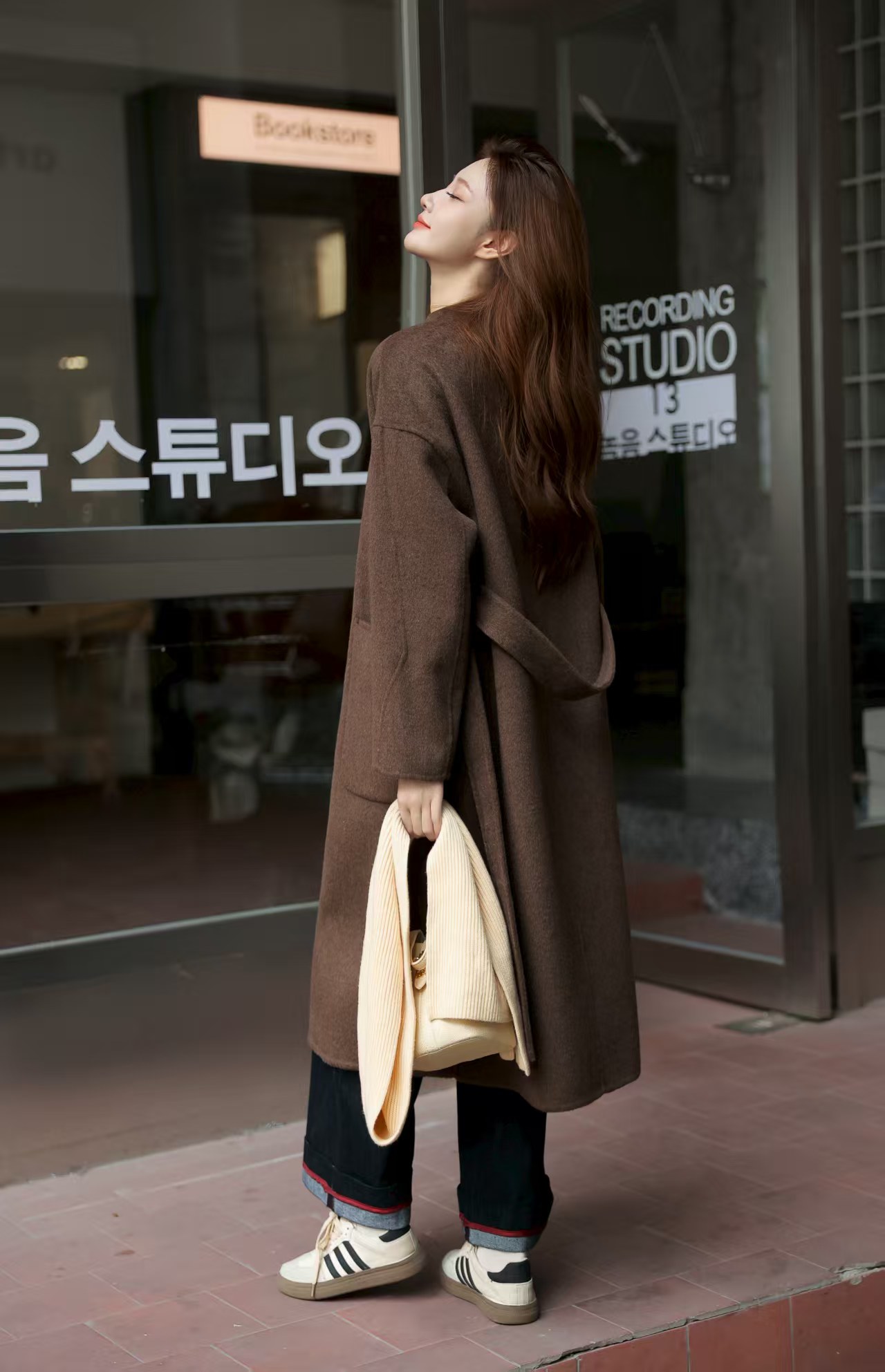 穿深咖色,沉稳内敛、自然亲和、复古知性。