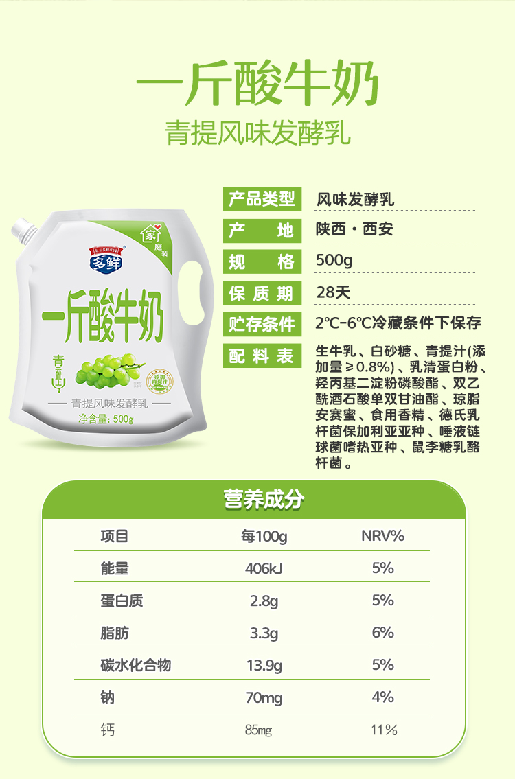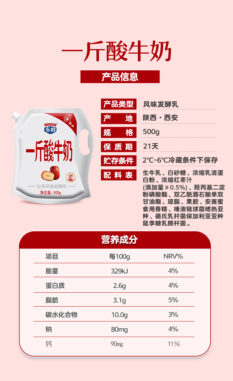 一斤酸牛奶系列口味酸奶2袋装【苹果猕猴桃青提红枣原味5种口味任选(配送到家)】