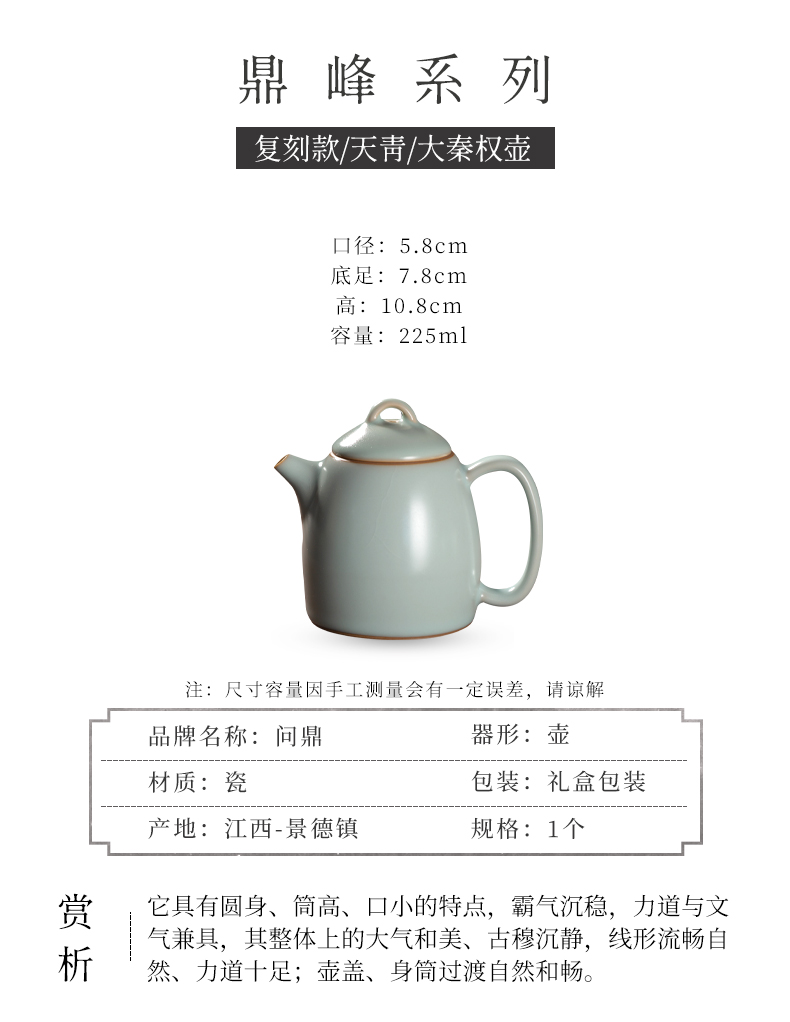 问鼎汝瓷天青复刻款大秦权壶