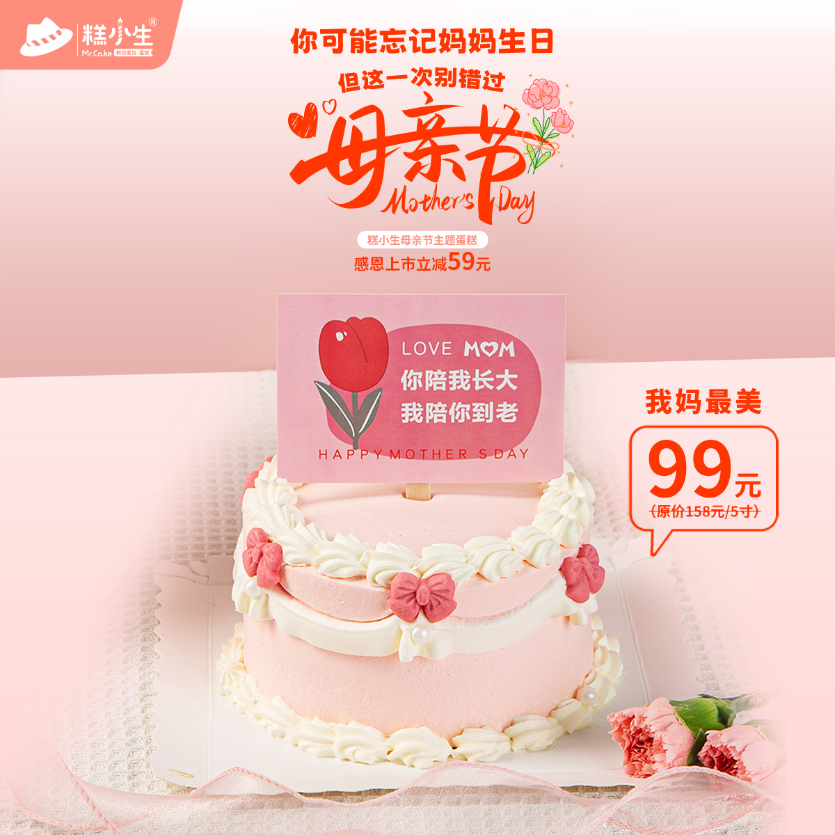 糕小生母亲节主题蛋糕『我妈最美』 - 感恩上市最高立减59元,你可能忘记妈妈生日,但这一次别错过母亲节
