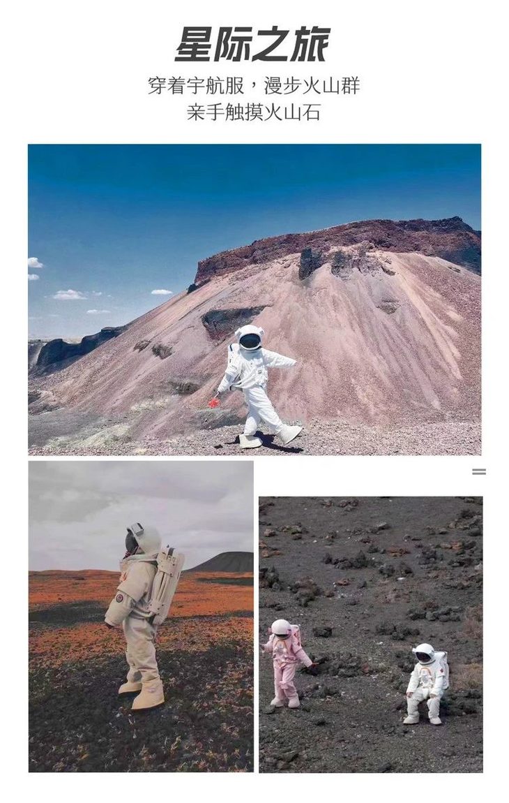3、娱乐:宇航服租赁80元/30分钟,骑马约150元/30分钟,自愿选择,以当地实际执行价格为准;