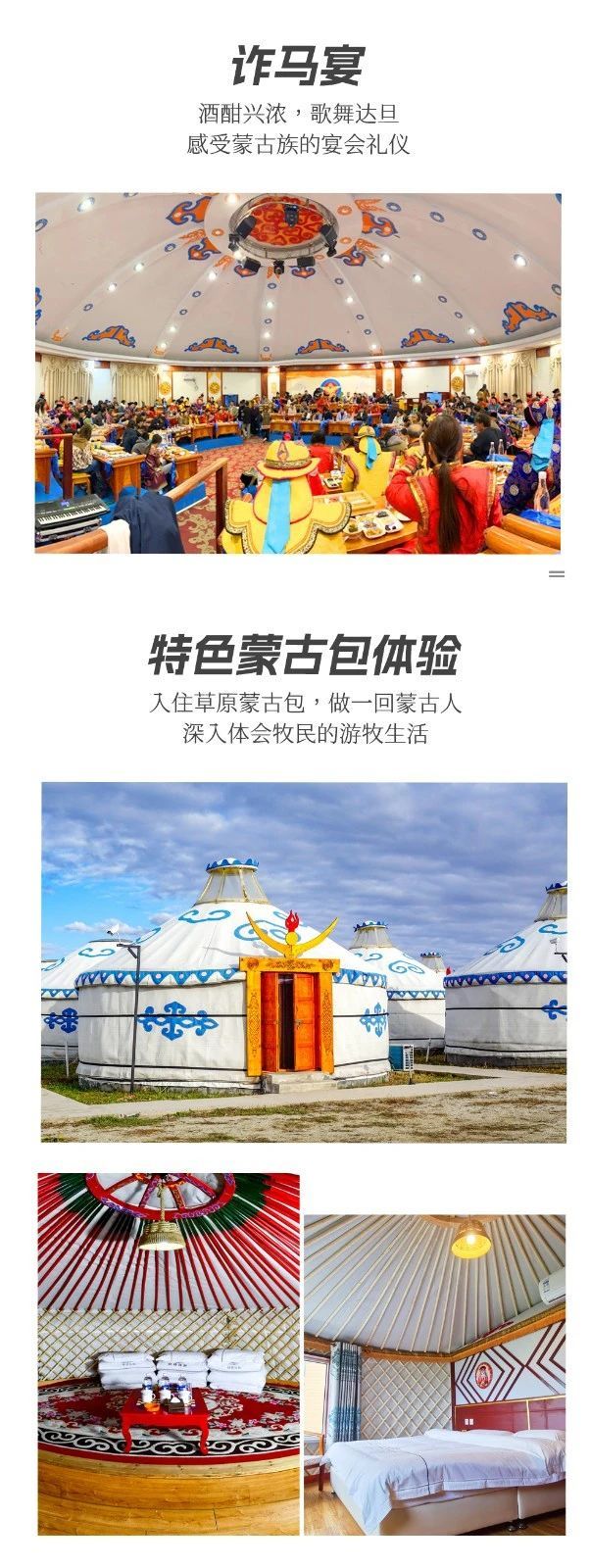 注:篝火晚会和民族表演根据草原当地的天气和防火政策执行,赠送项目不参加不予退费。