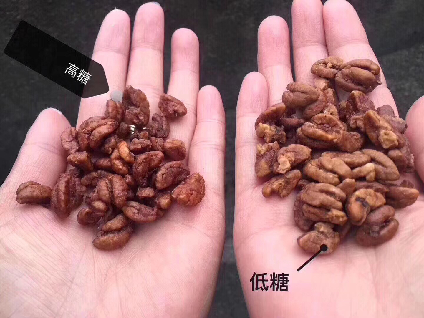 淘宝是便宜的,但所有卖的都是高糖毛重,一斤核桃罐子占三两,干燥剂占三两,核桃仁剩四两,还有二两糖……😂😂而且高糖的真滴不好吃,皮皮的,吃到的都是糖味儿没有核桃香味儿…临安这边正常只做高糖,我们要求的做低糖,专为我们自己定制~