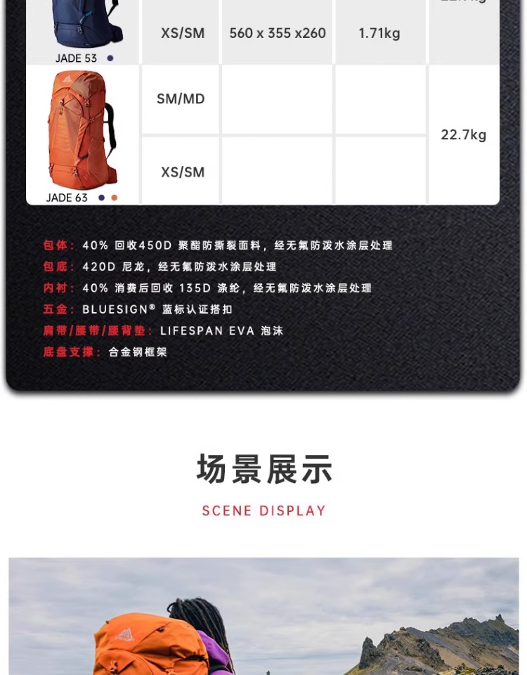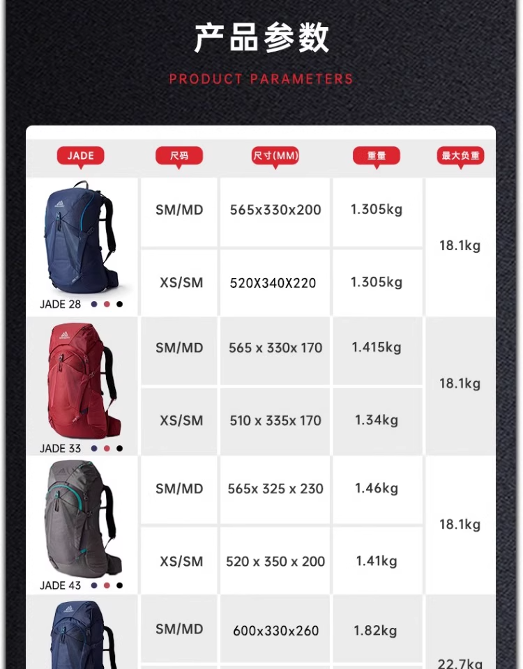 Gregory格里高利 JADE探秘33L 女士户外大容量透气徒步登山背包新款
