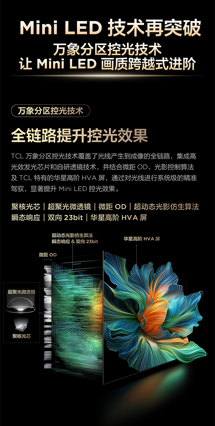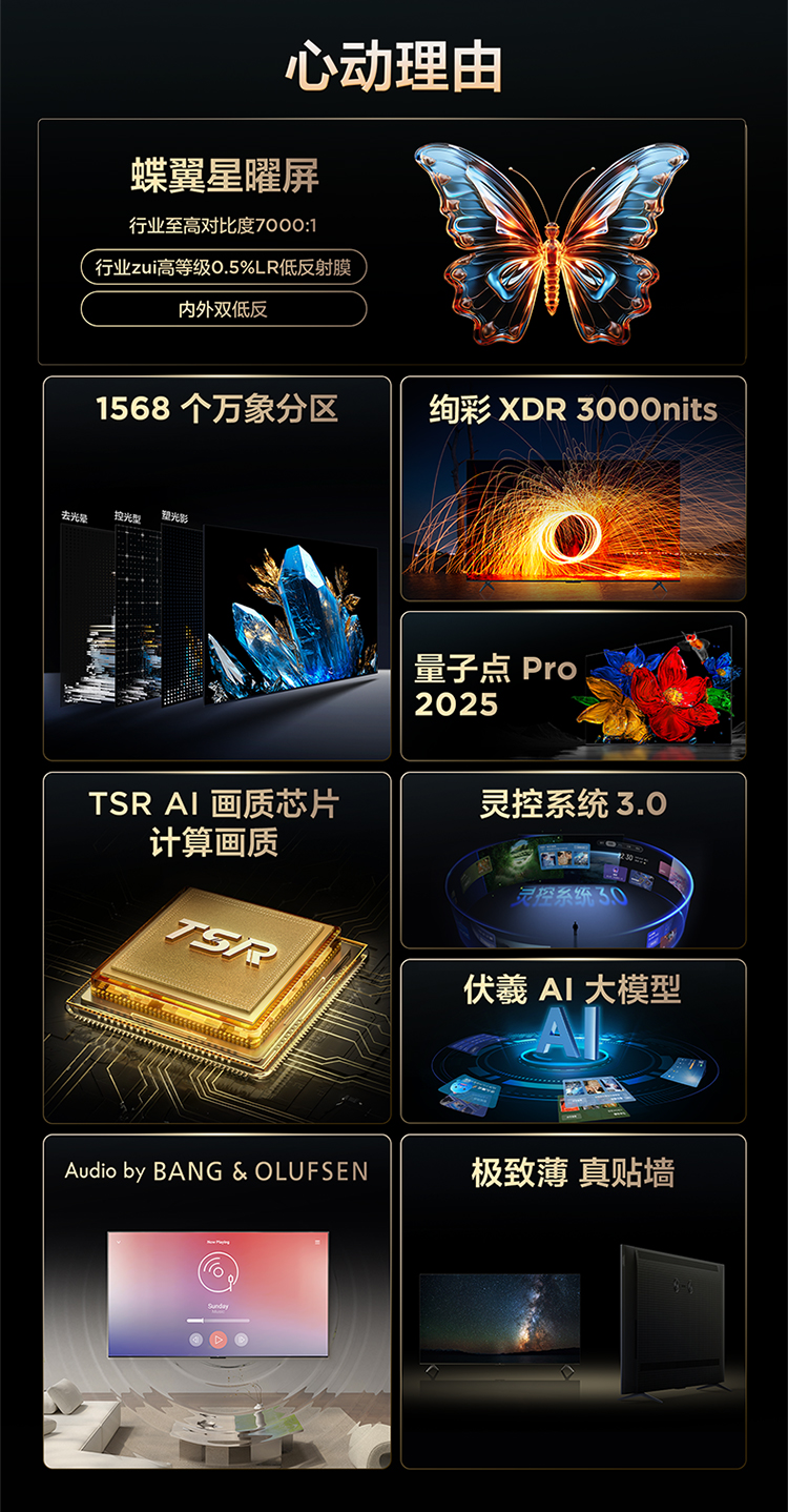 TCL电视 85C11K QD-Mini LED 1568个万象分区 绚彩XDR3000nits Audio by Bang & Olufsen 85英寸