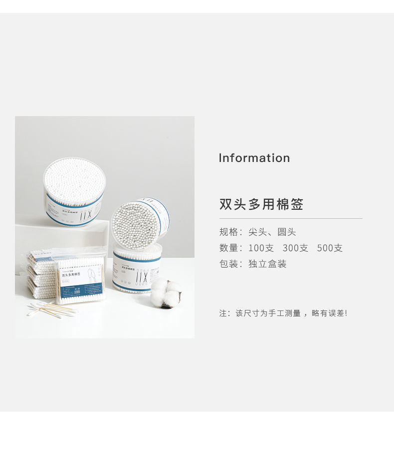 一次性尖头卫生棉球棒 I 家用棉花棒双头木棒 500-2000