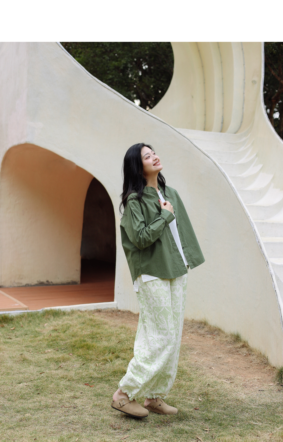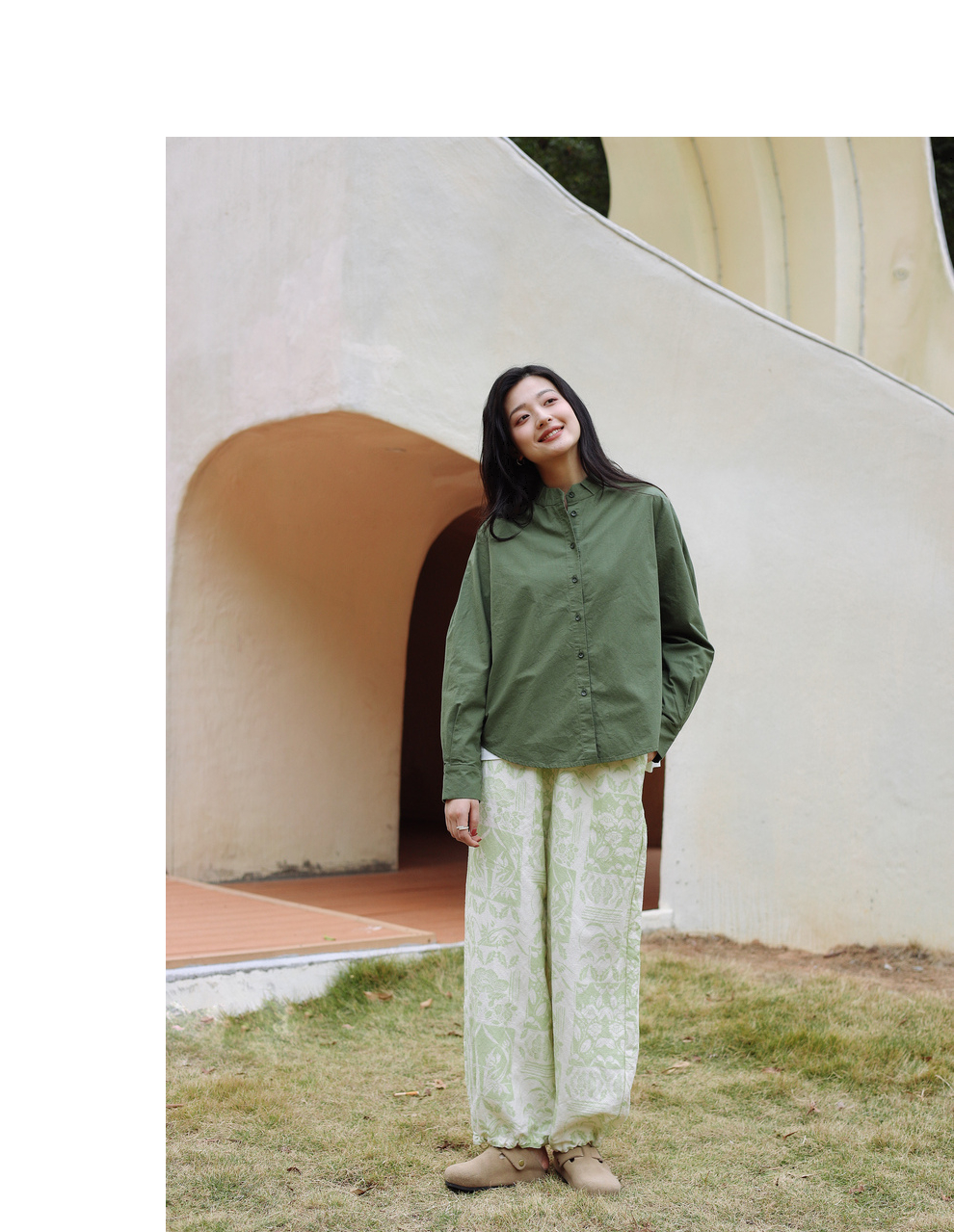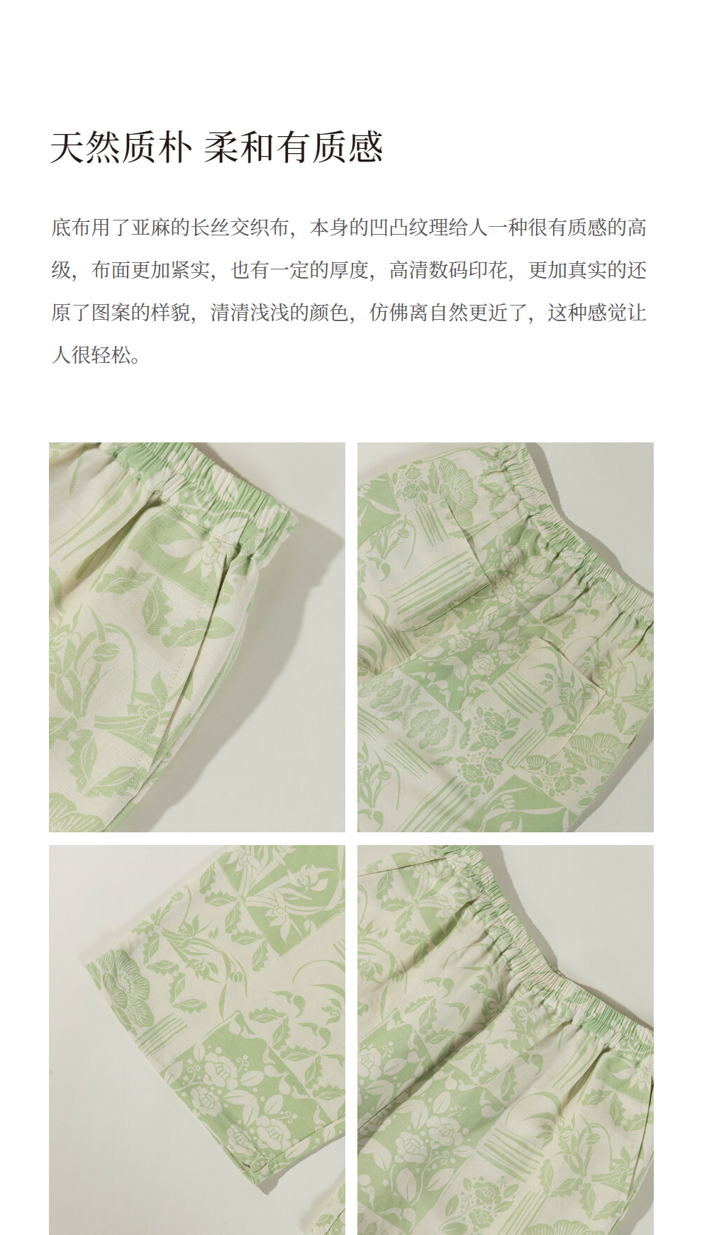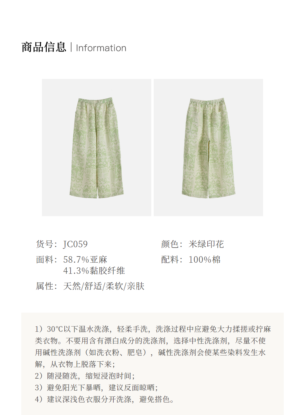 绽放059朵/二月春花亚麻印花清新减龄脚口弹力抽绳宽松休闲长裤女