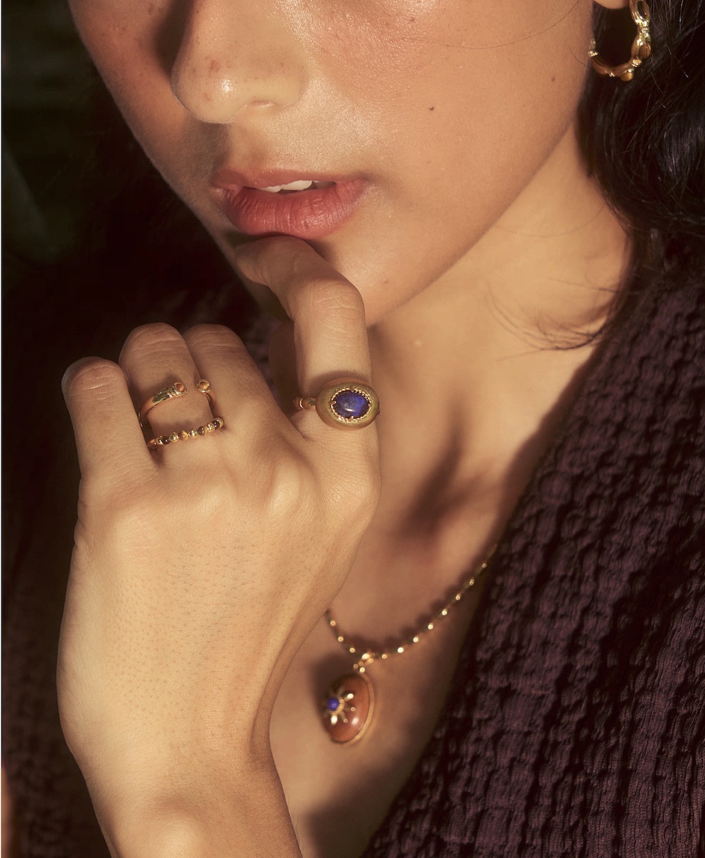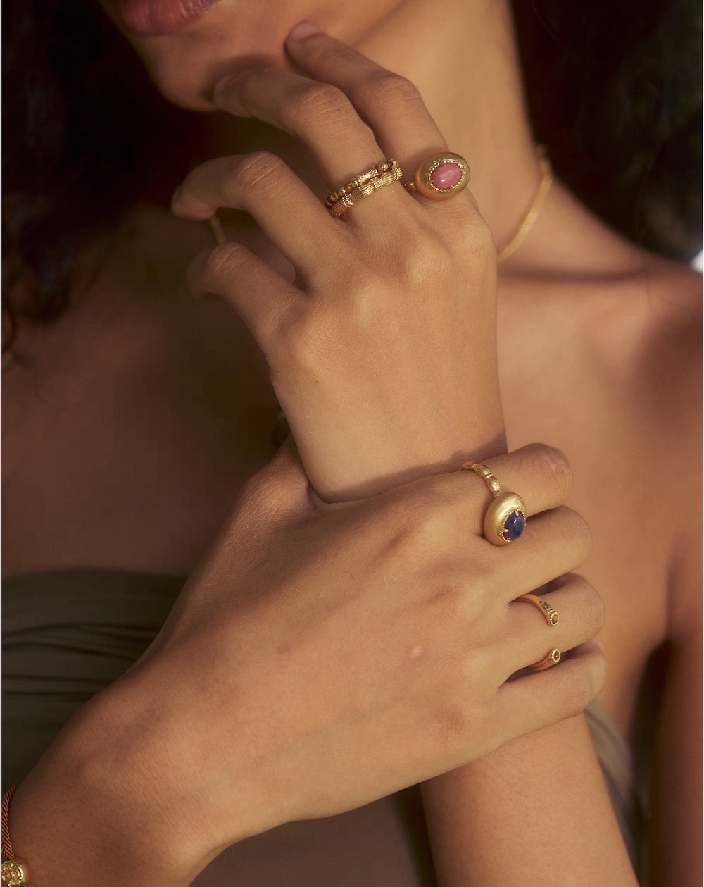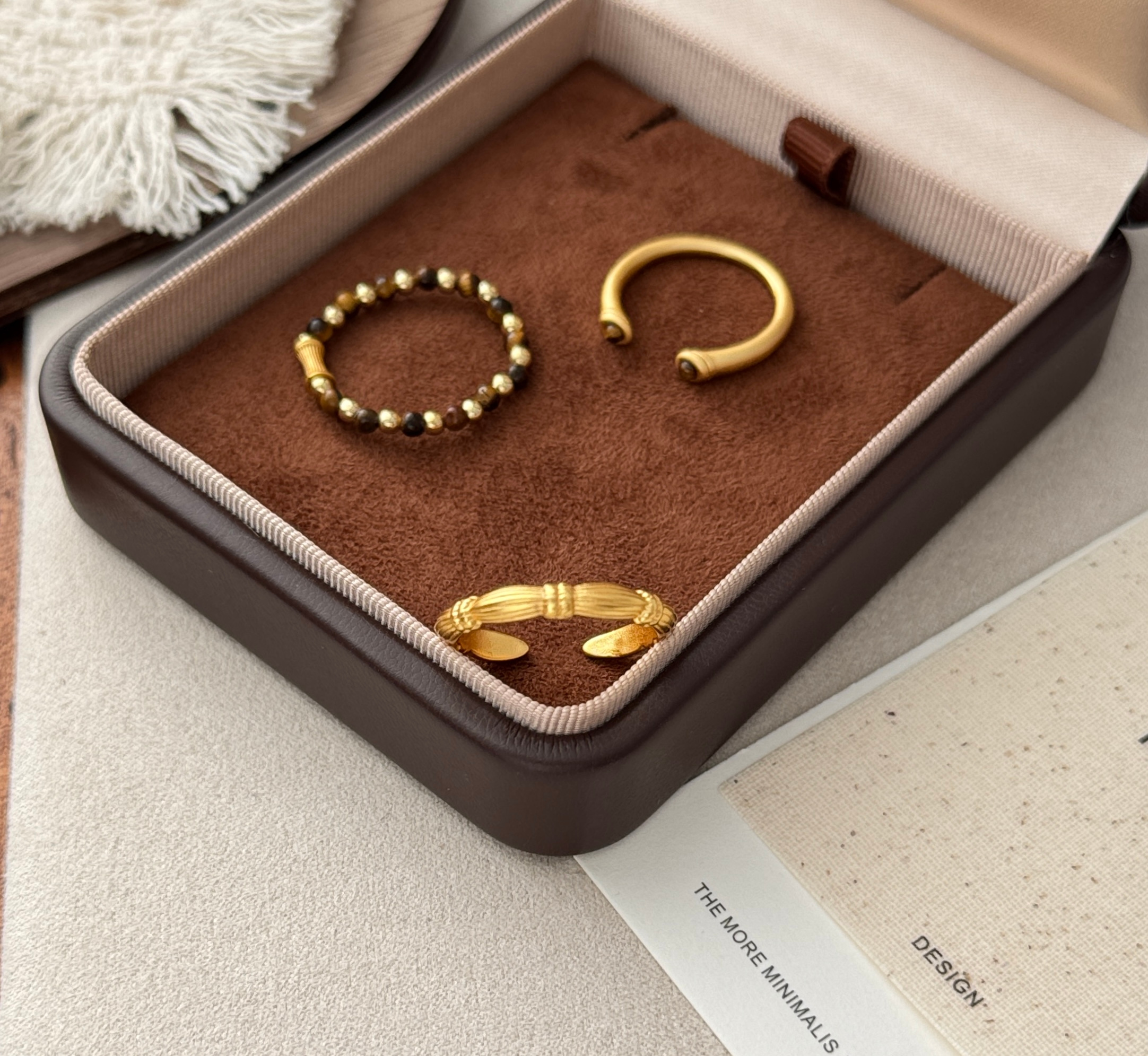 每一颗戒指都是独一无二的纹理,光线下泛着细腻金光。