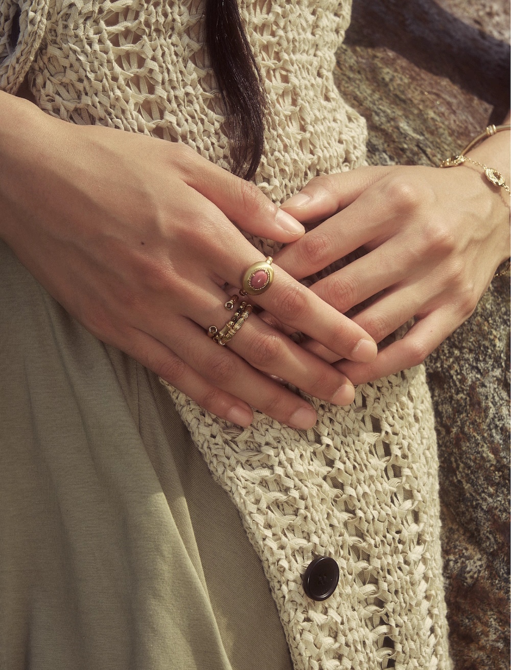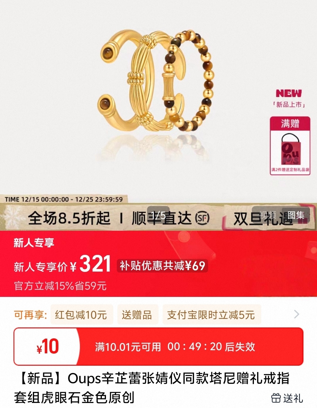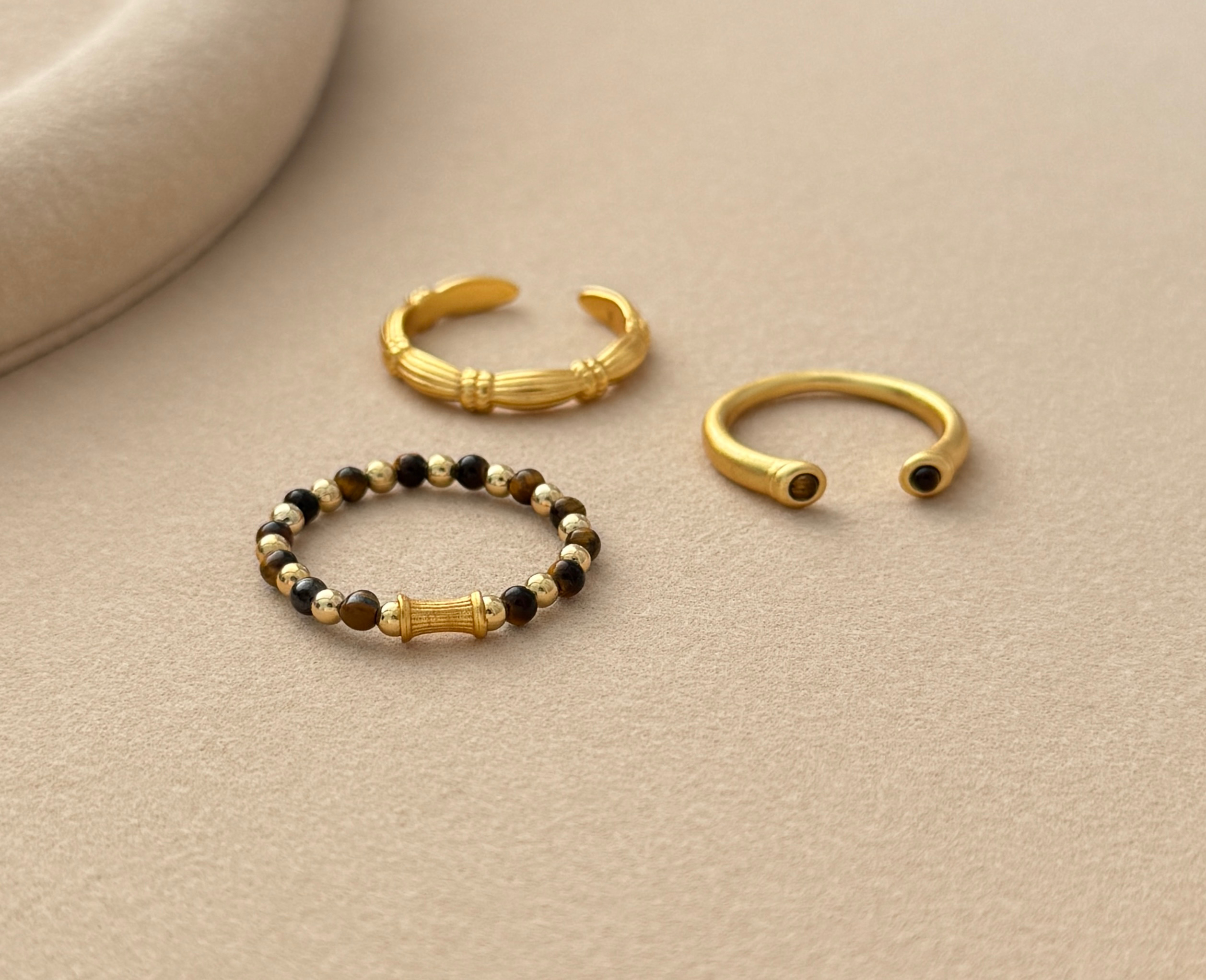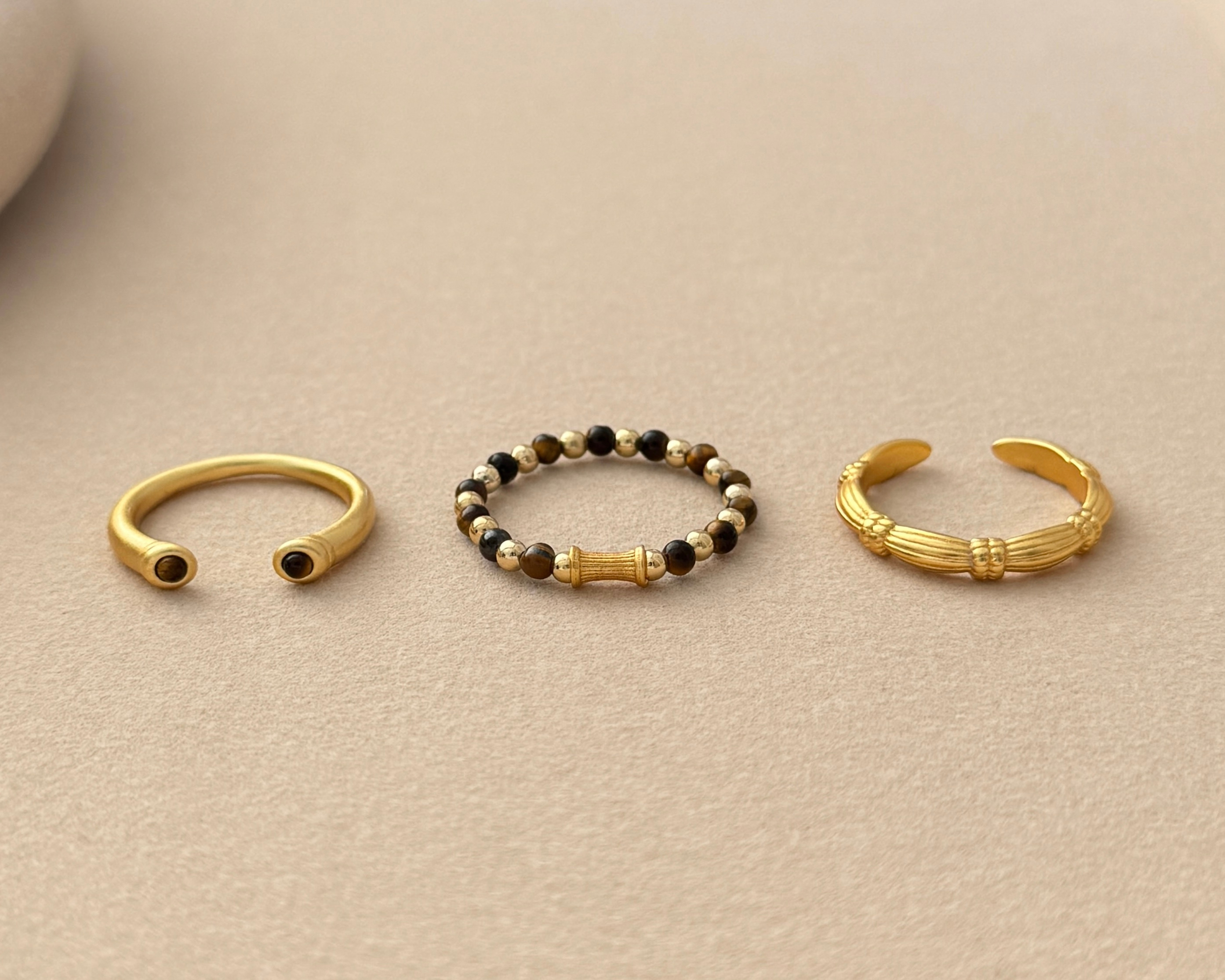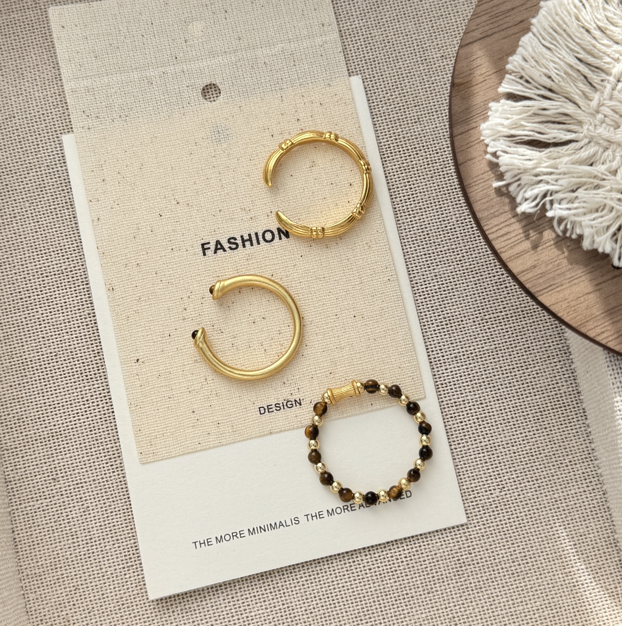 复古纹路金属环+虎眼石细环的双环设计,层次感直接拉满~